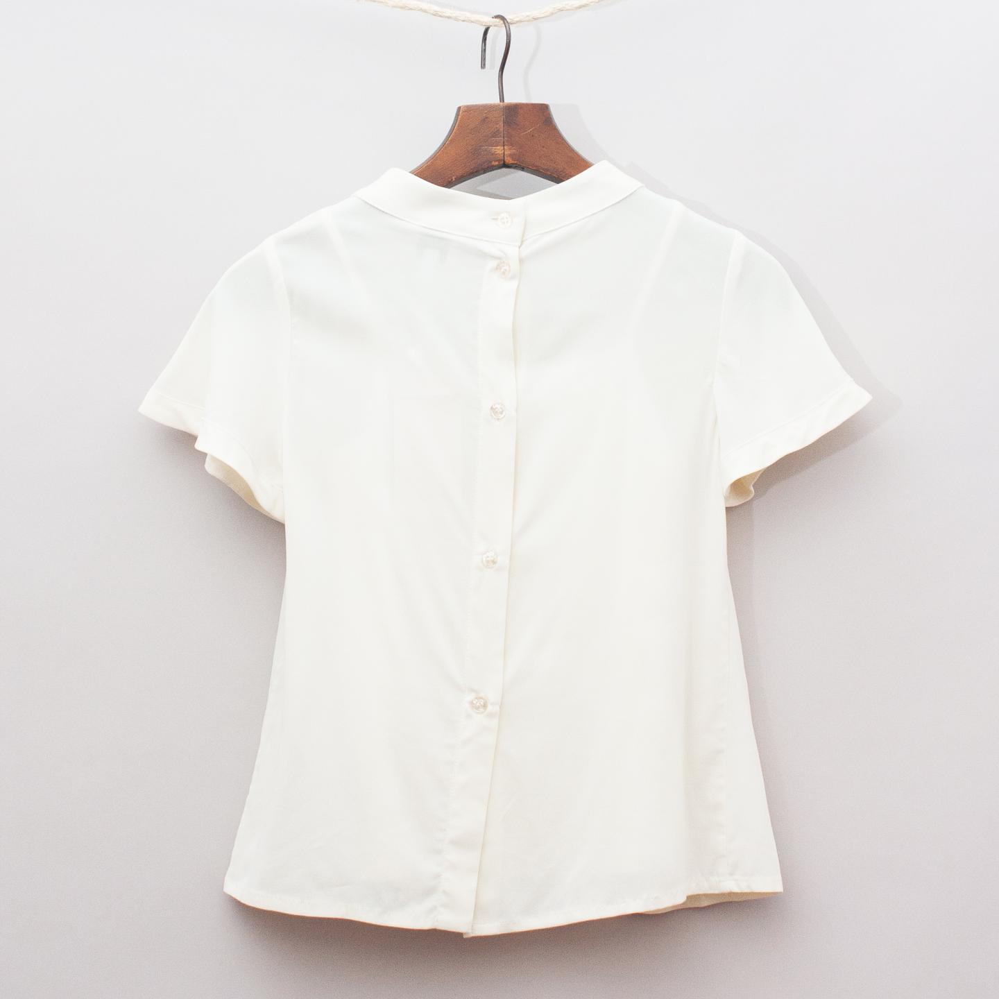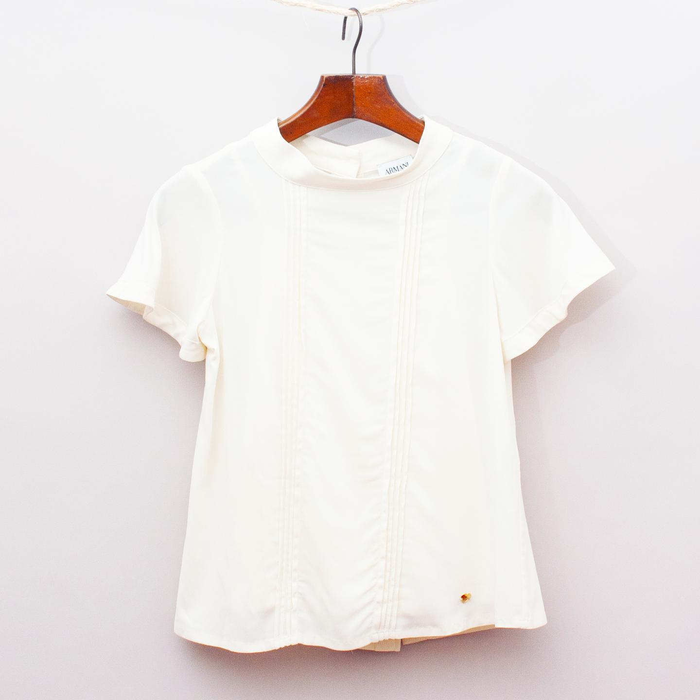 Armani "brand new with tags" cream short sleeve blouse with pleated detailing on the front and flutter sleeves with built in cami and full button down back