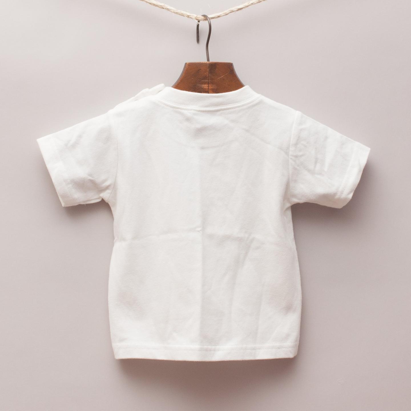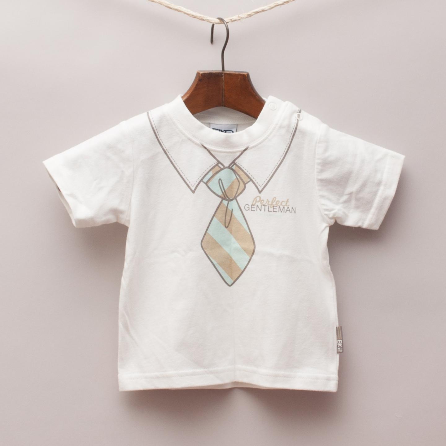 BK2 white t-shirt with drawn on collar and tie detail and shoulder button closure
