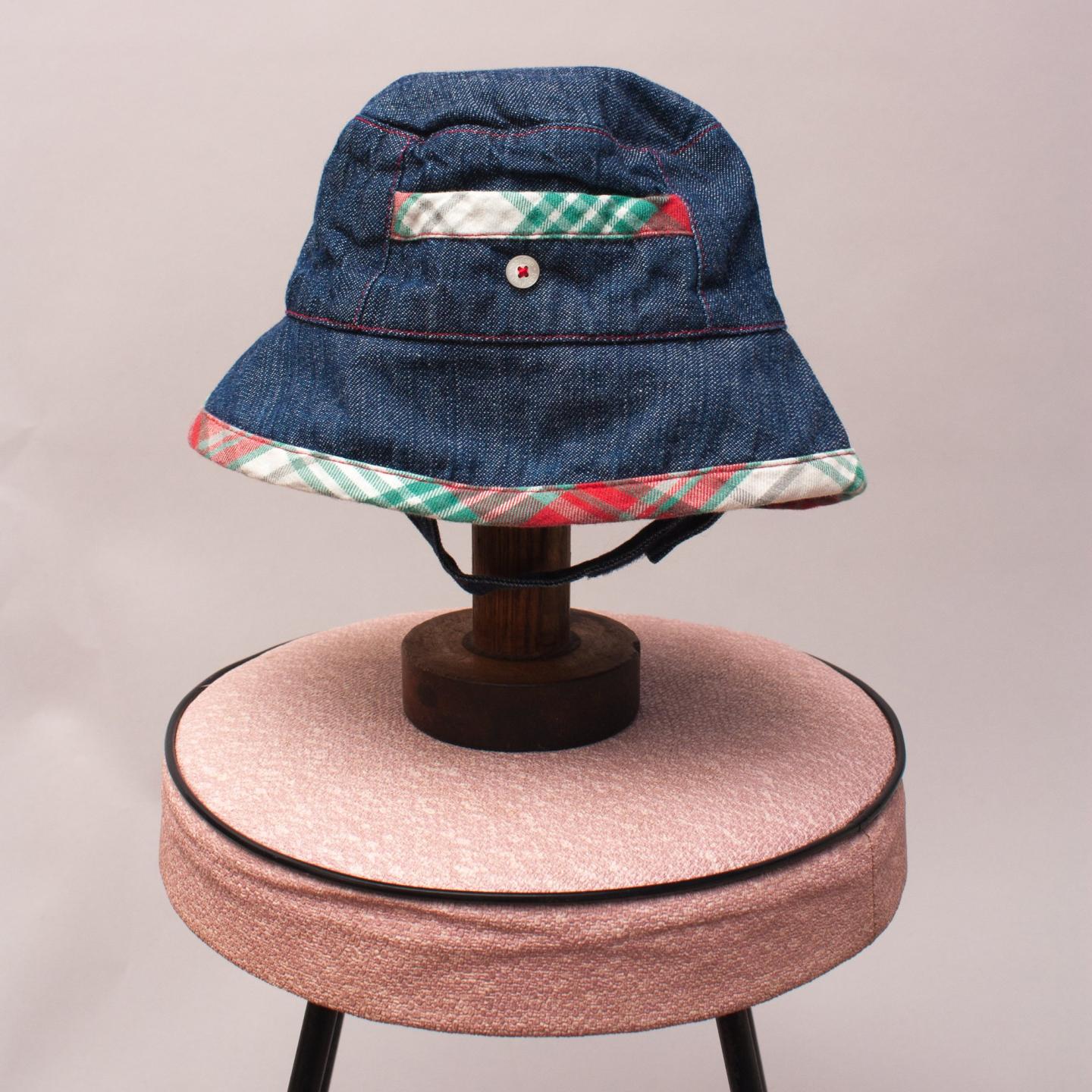 Baby Gap "brand new with tags" denim hat with tartan trim - Size 6-12Mths approx.