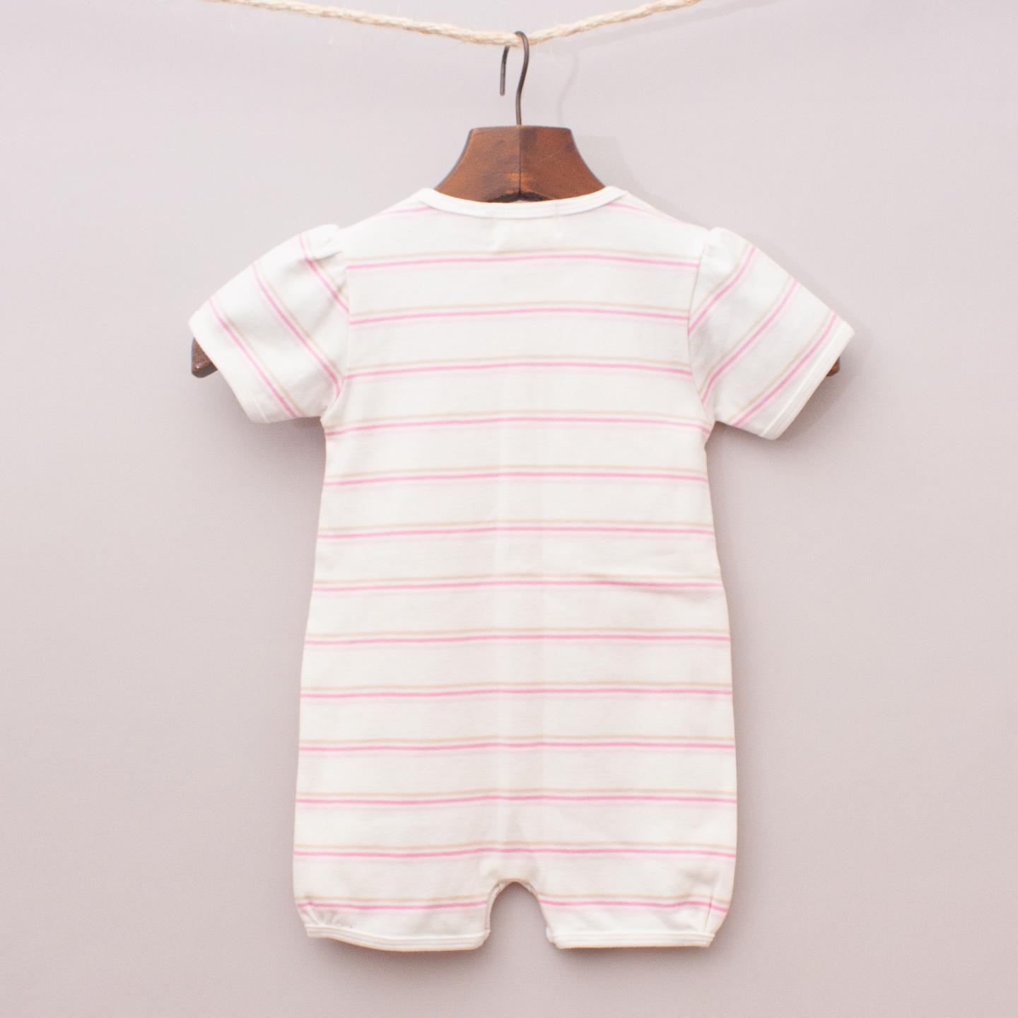 Baby Kids "brand new with tags" cream and pink striped short sleeve romper with puffed sleeves and button down front *100% Organic Cotton