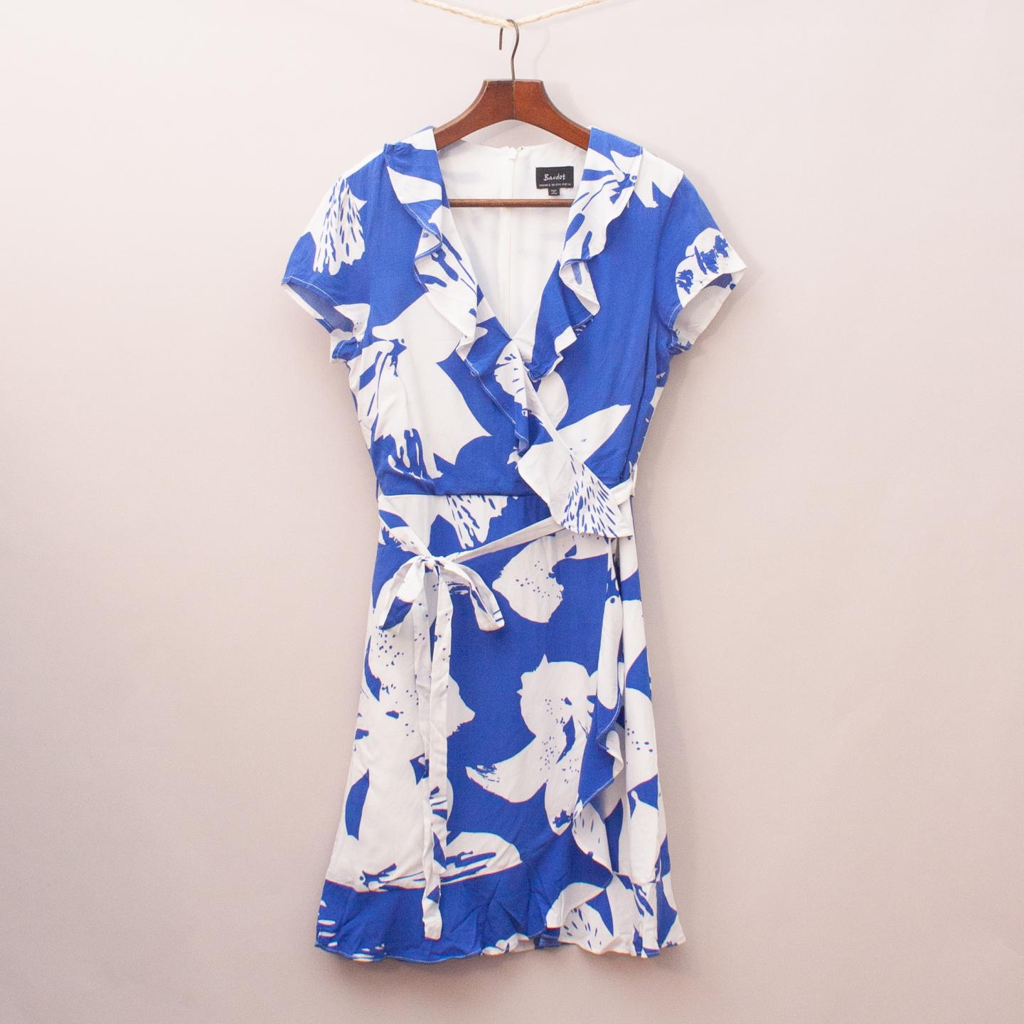 Bardot bright blue and white dress with ruffle details, tie waist and zip back closure - Marked as women's size 8 *100% Viscose