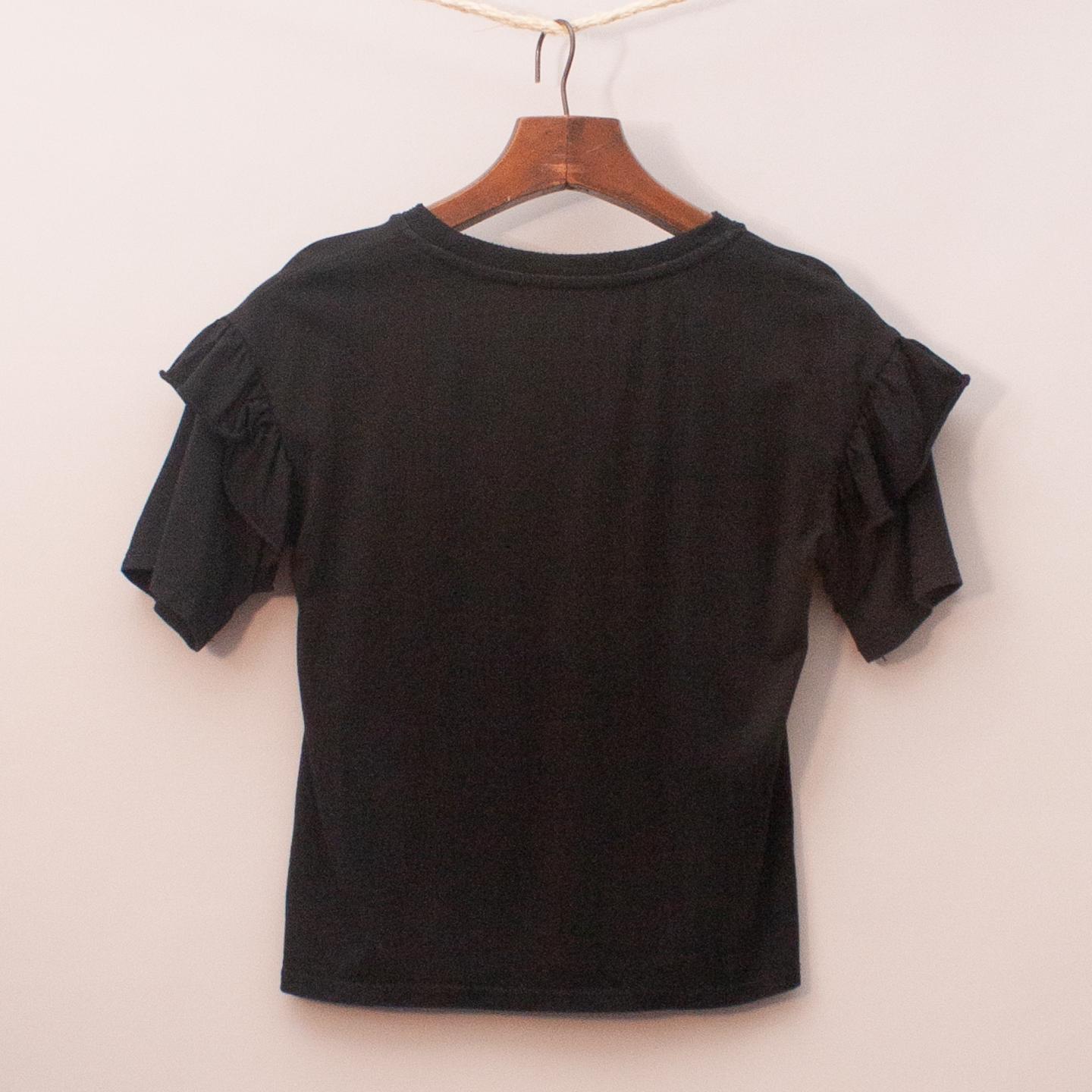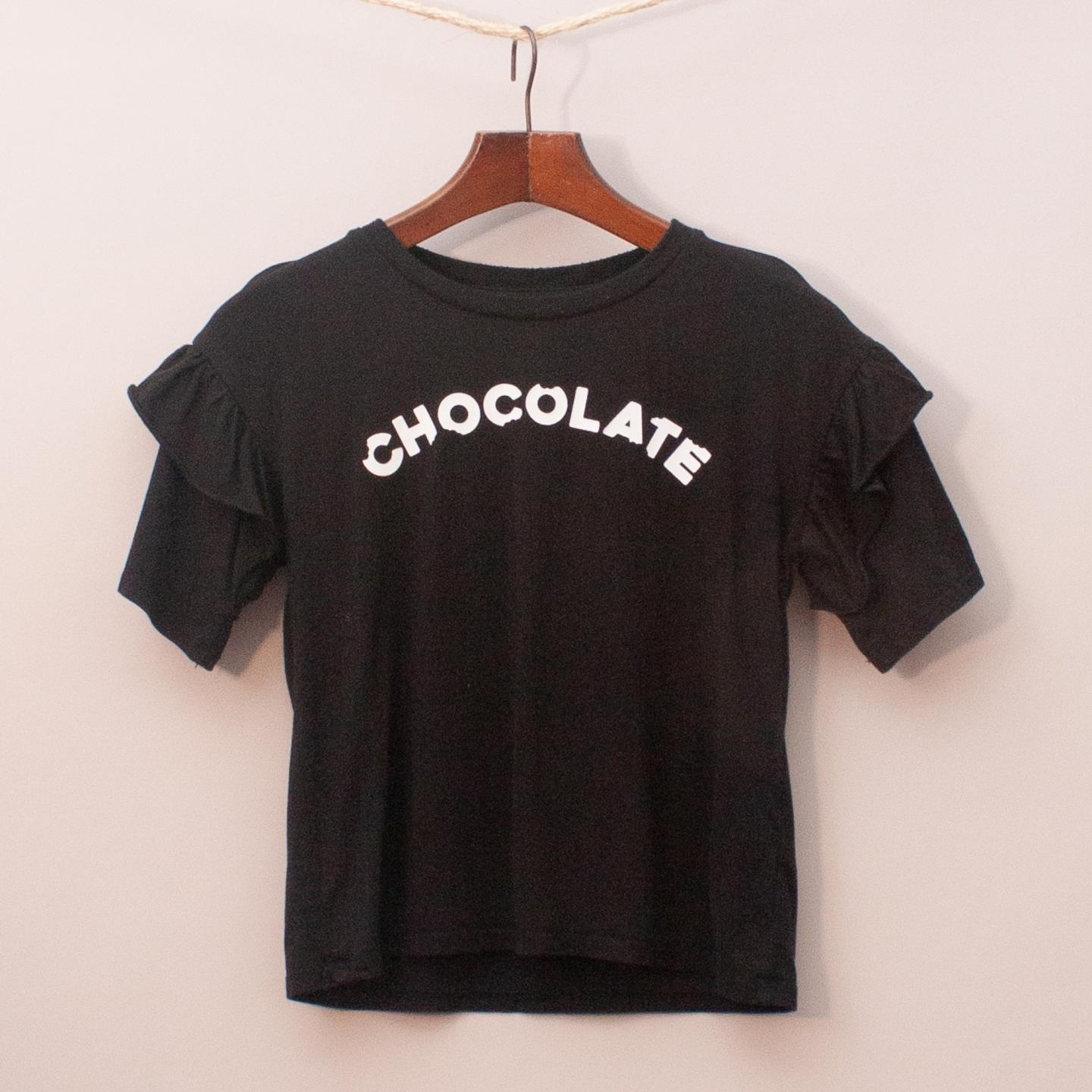 Bardot black t-shirt with ruffle sleeve detail and printed 'chocolate' across the front *55% Cotton, 45% Modal