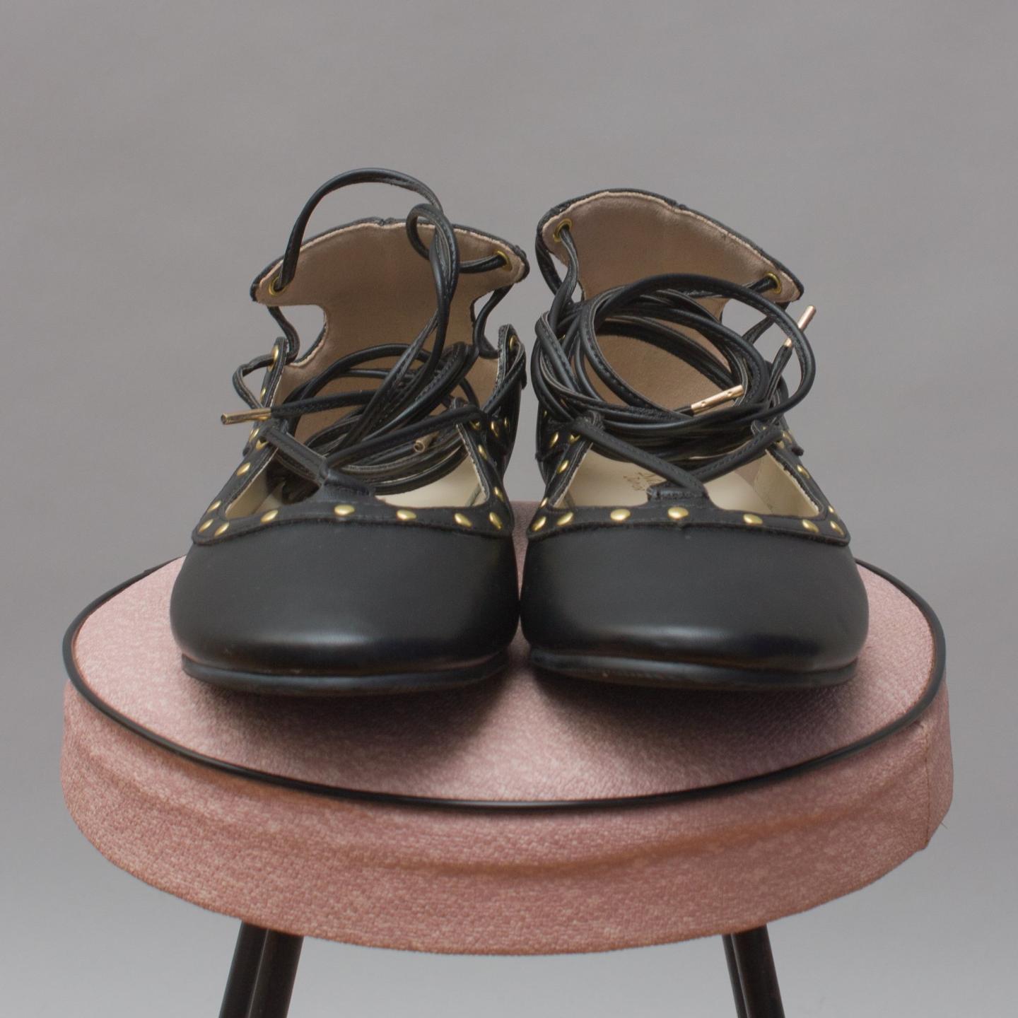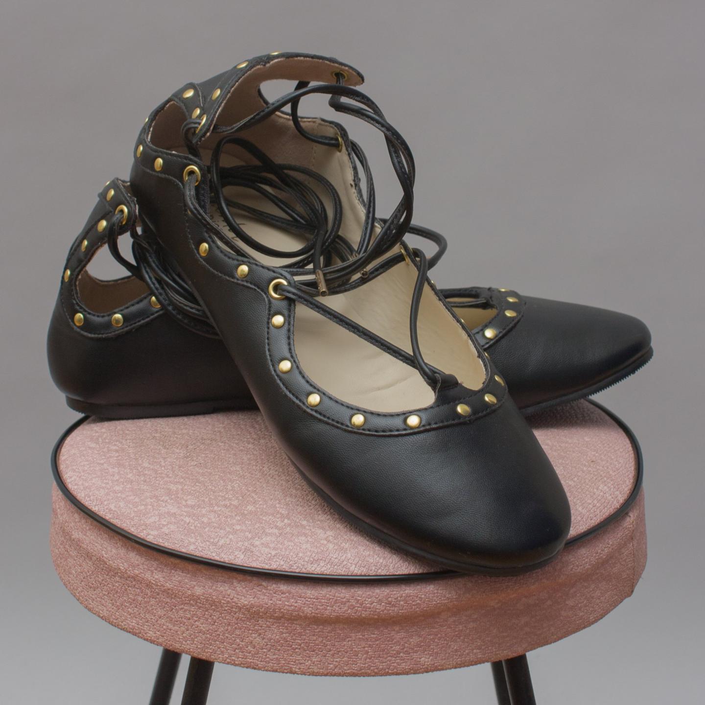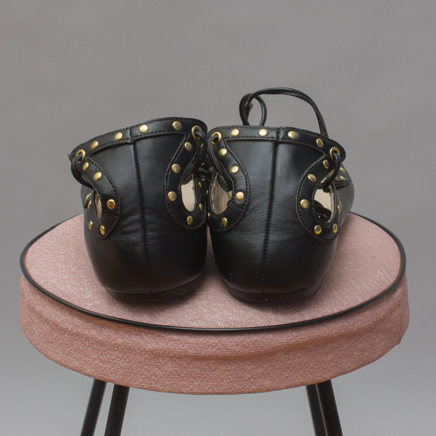 Bardot Junior black ballet flats with gold studs and lace up details - Size EU Size 37 (Age 8 Approx.)