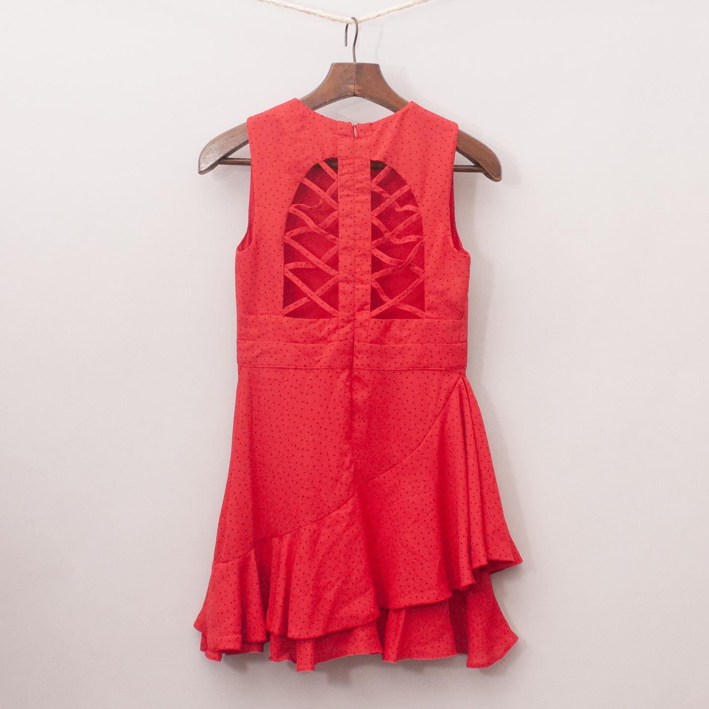Bardot red and black polka dot dress with ruffle hemline, cut out details and zip ack closure *100% Polyester
