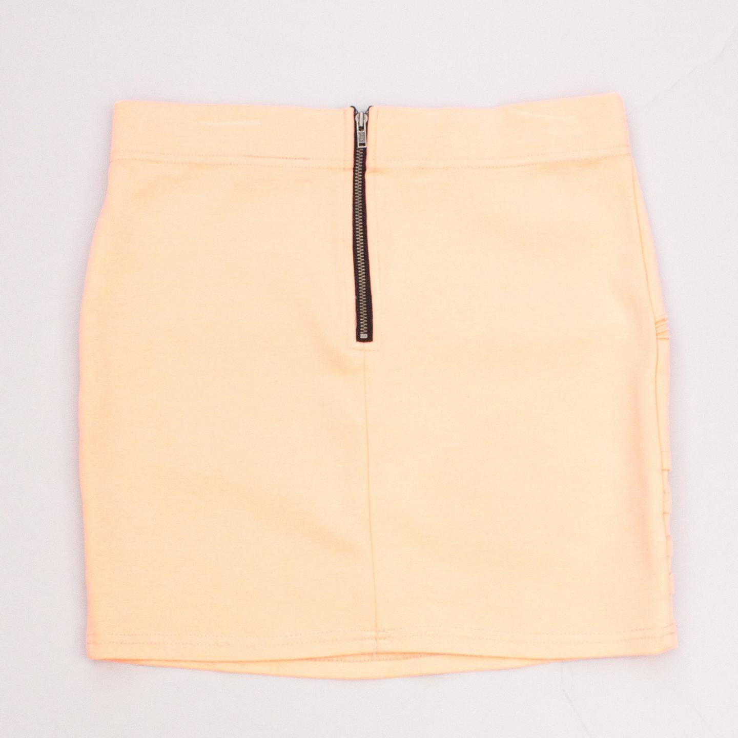 Bardot bright orange stretch mini skirt with layered line detail and zip back closure