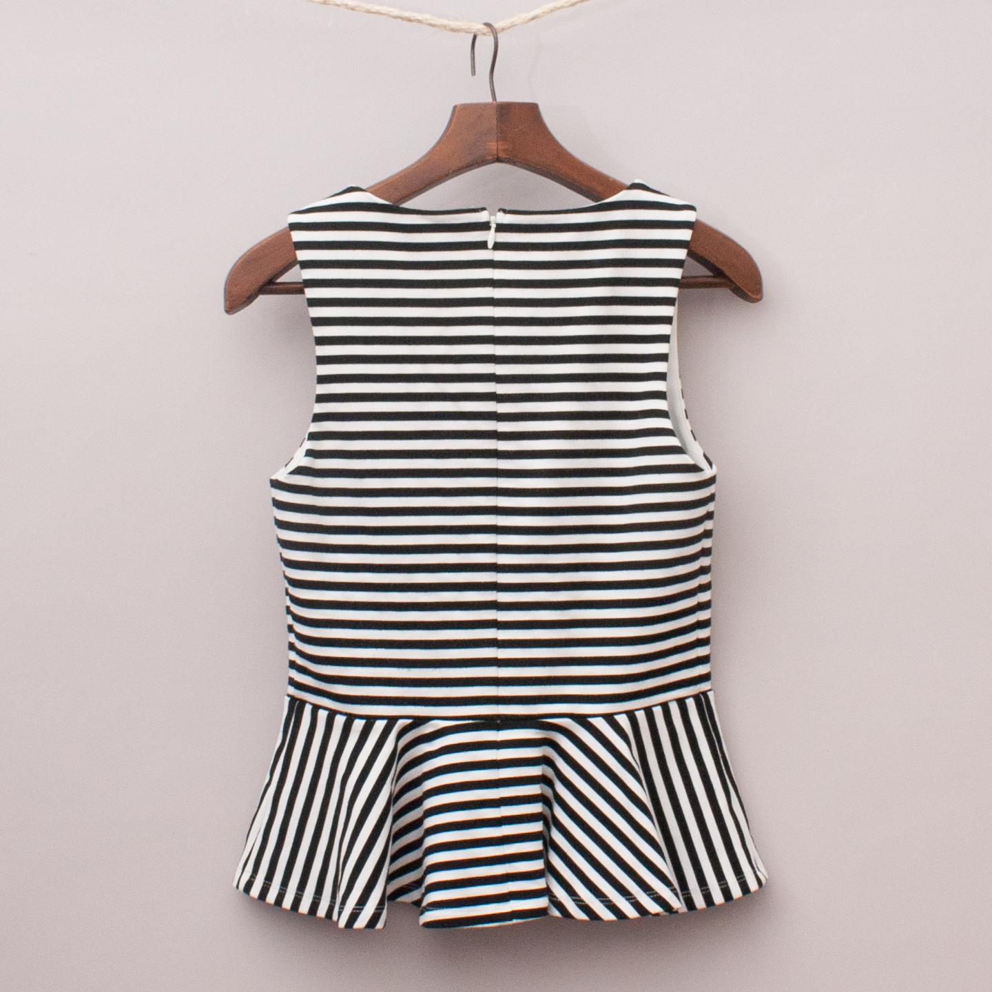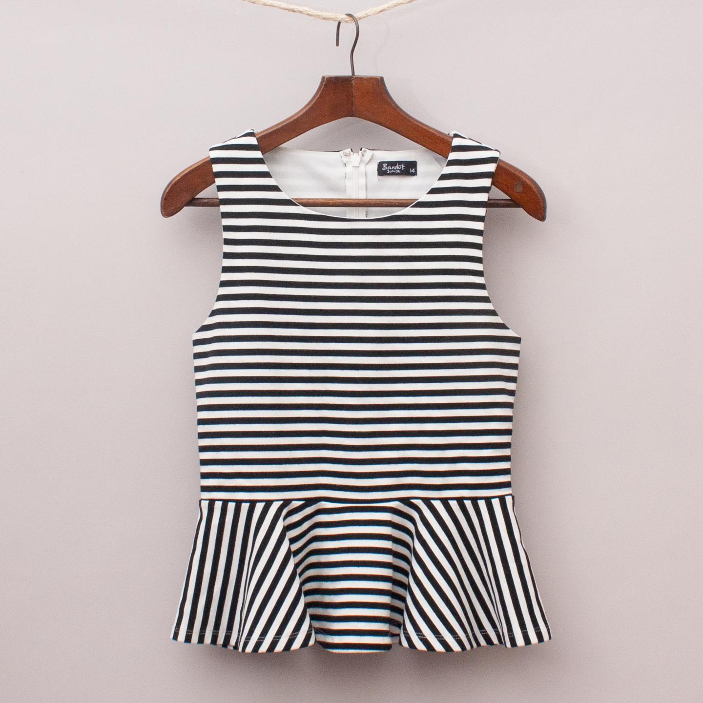 Bardot black and white striped singlet with peplum style hemline and zip back closure *Polyester/Viscose blend