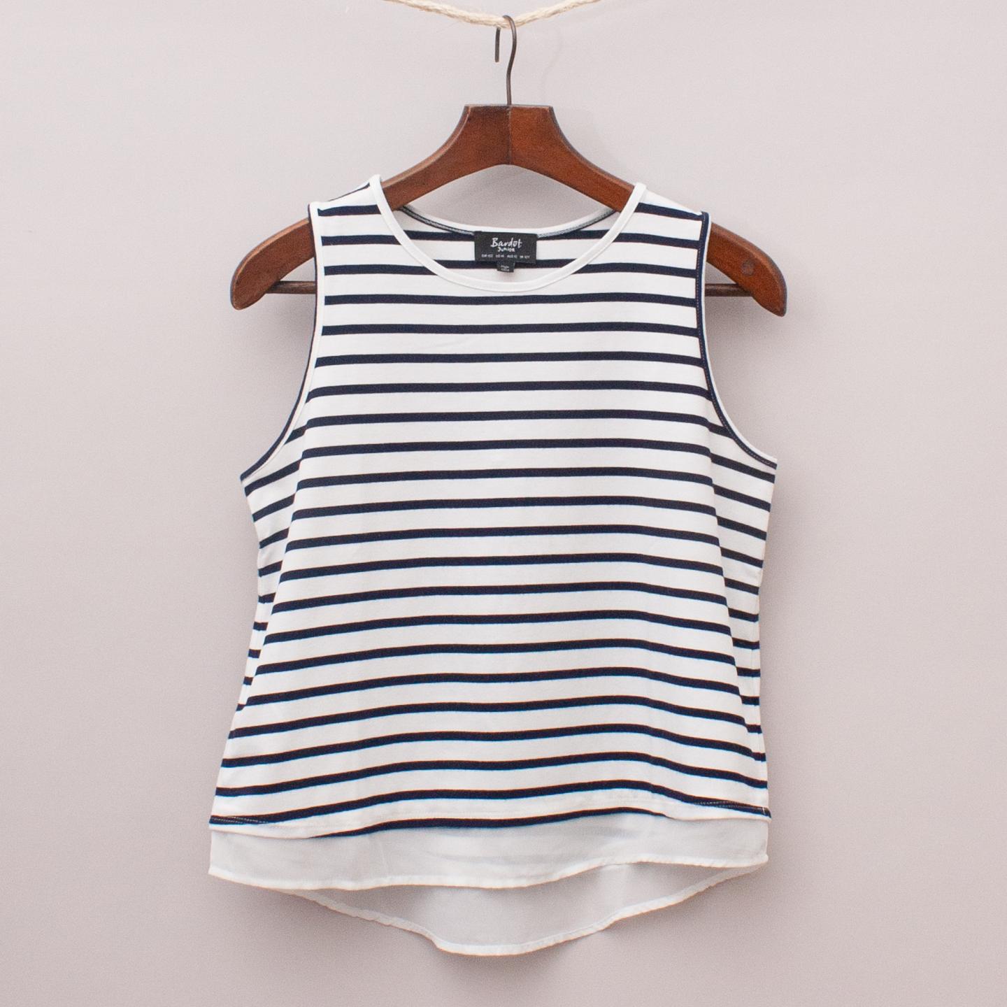 Bardot navy blue and white striped singlet with sheer hemline *95% Viscose, 5% Elastane