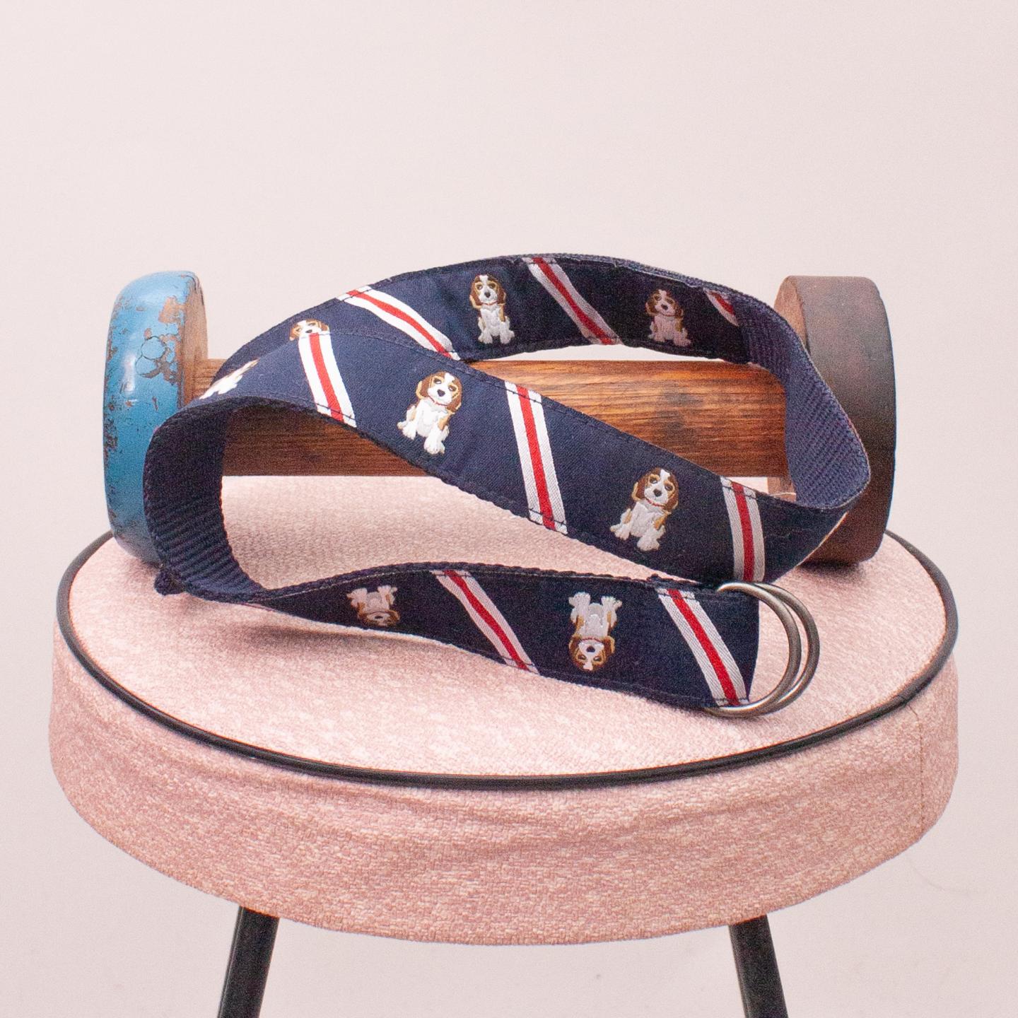 Beagle patterned, navy blue and red and white striped belt with double loop fastening - Size 64cm