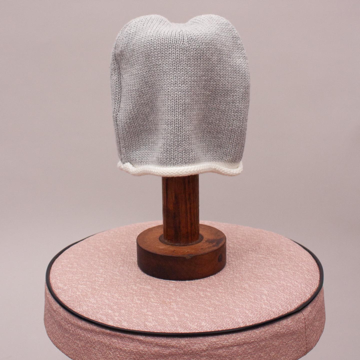 Bebe plain grey knit beanie with rolled white trim - Size XXS