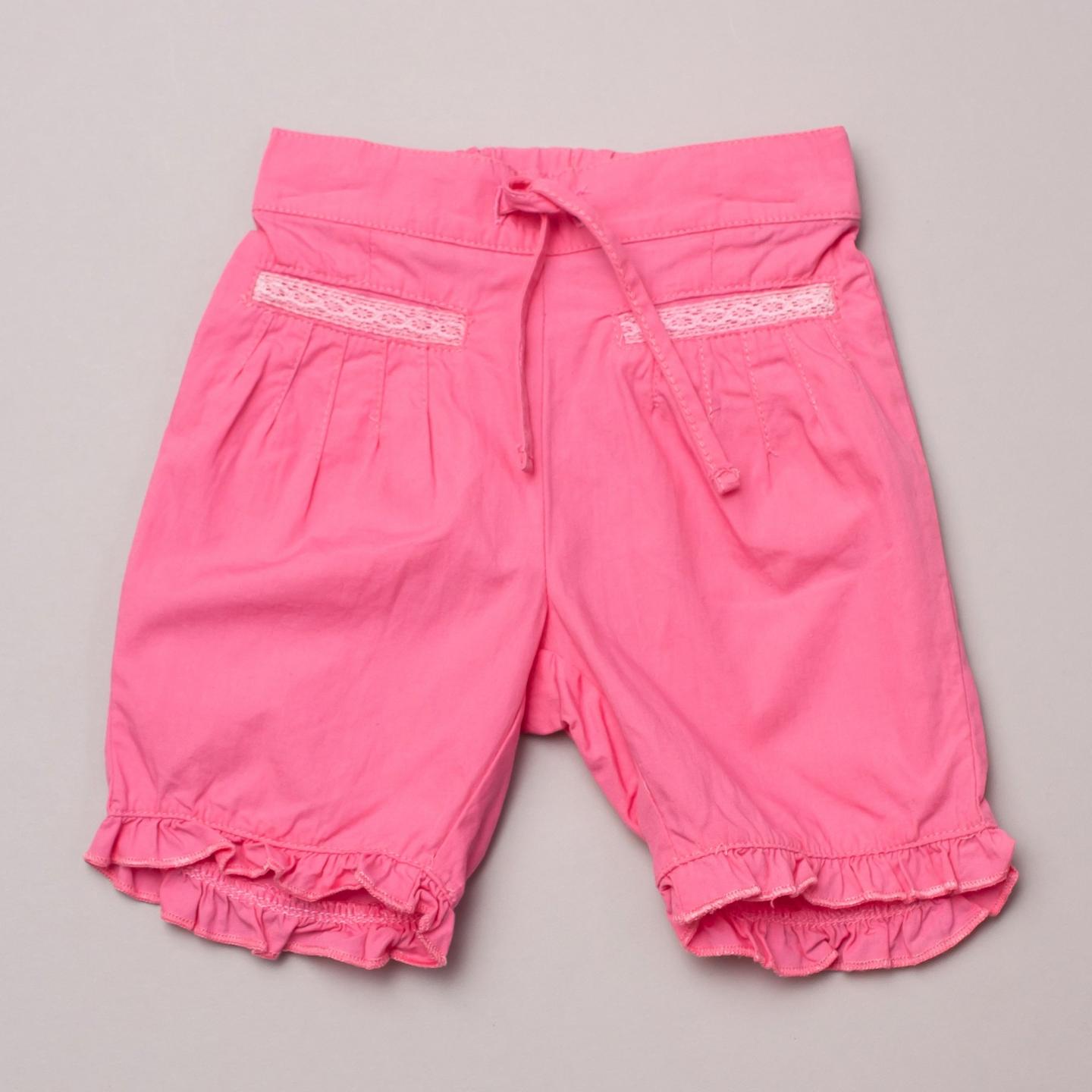 Bebe candy pink light weight pants with two front pockets, ruffle and lace trims, elastic waistband and drawstring