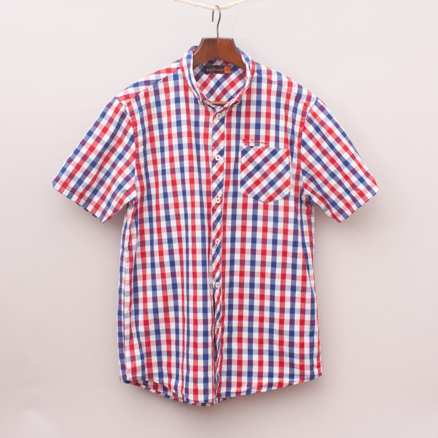 Ben Sherman red, white and blue check short sleeve shirt with single front pocket and full button down front *100% Cotton