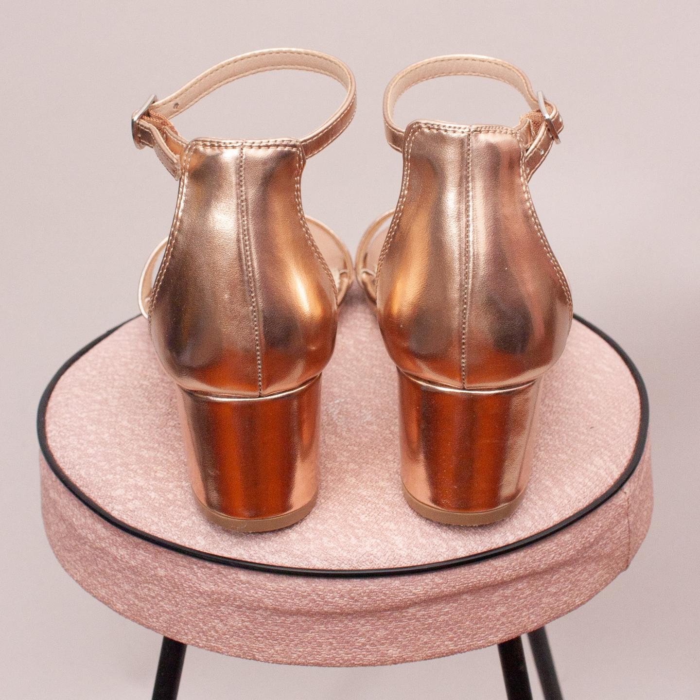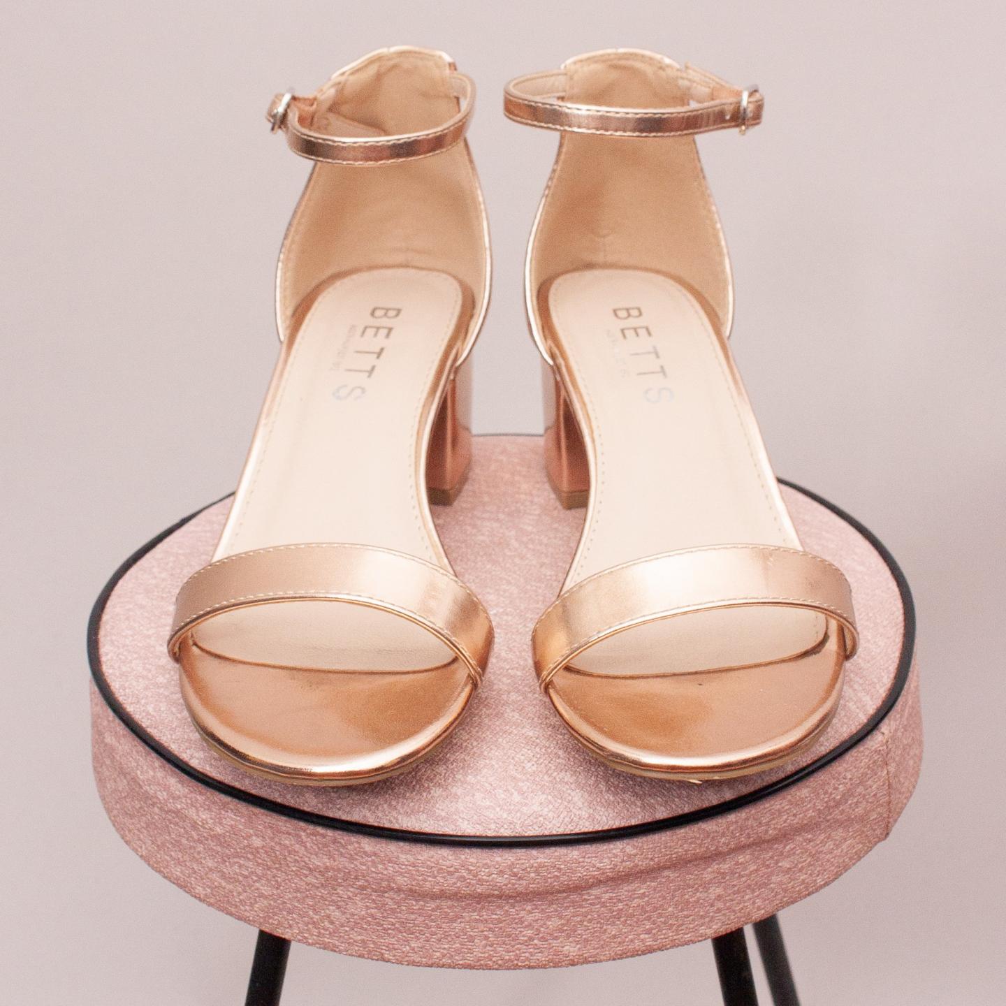 Betts "brand new" rose gold metallic sandals with shorts, thick heel and single buckle strap - Size AU 9 (Age 12-14 Approx.)