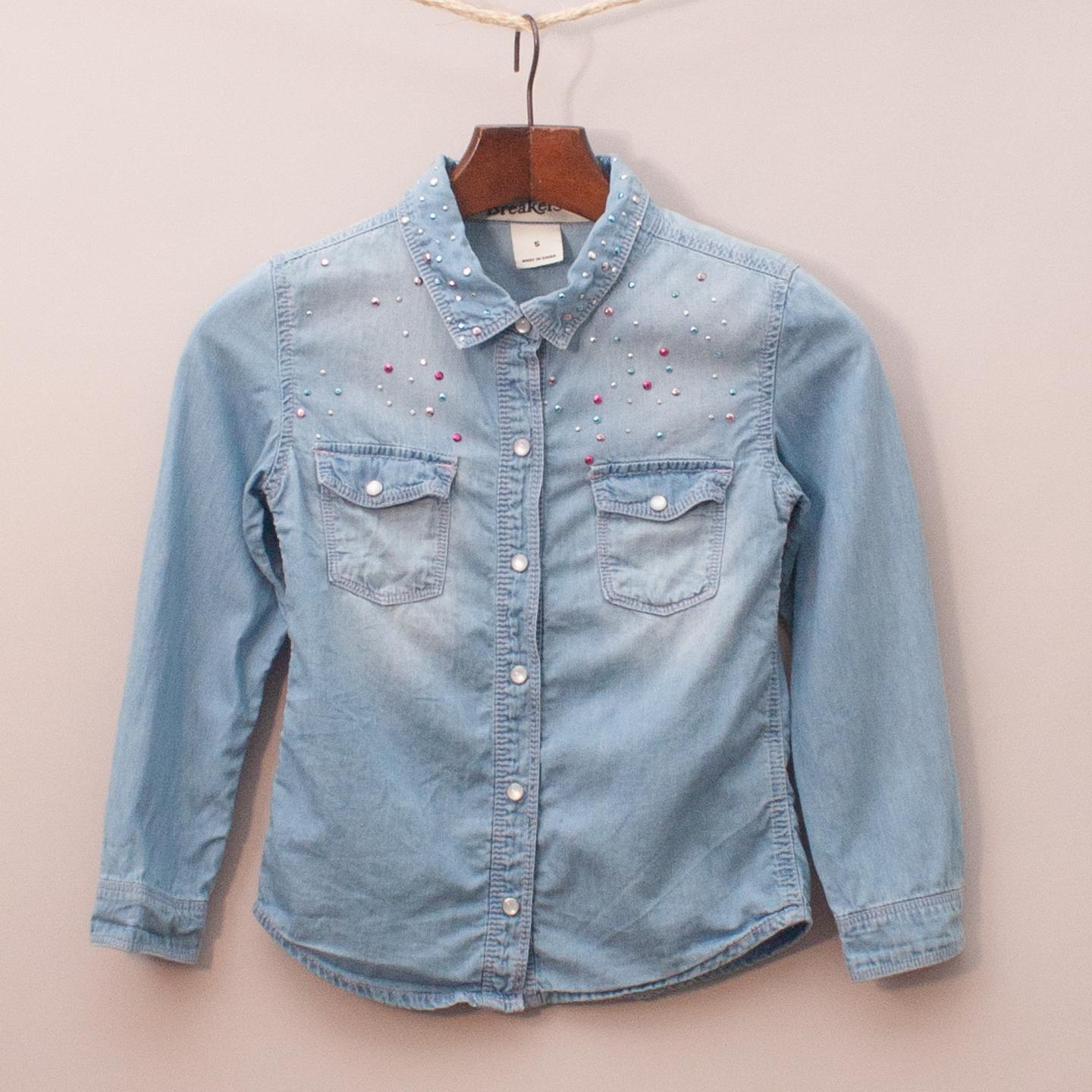 Breakers chambray long sleeve shirt with two front pockets and diamante embellishment *100% Cotton