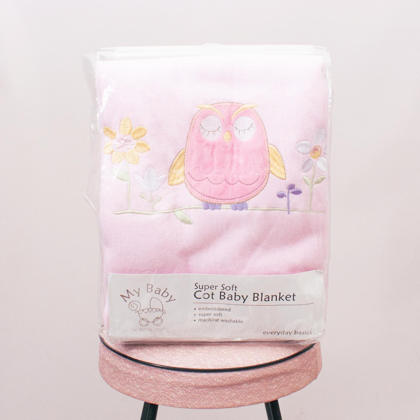 Bubba Blue super soft pastel pink cot baby blanket with embroidered owl and flowers - Size 120cm x 140cm