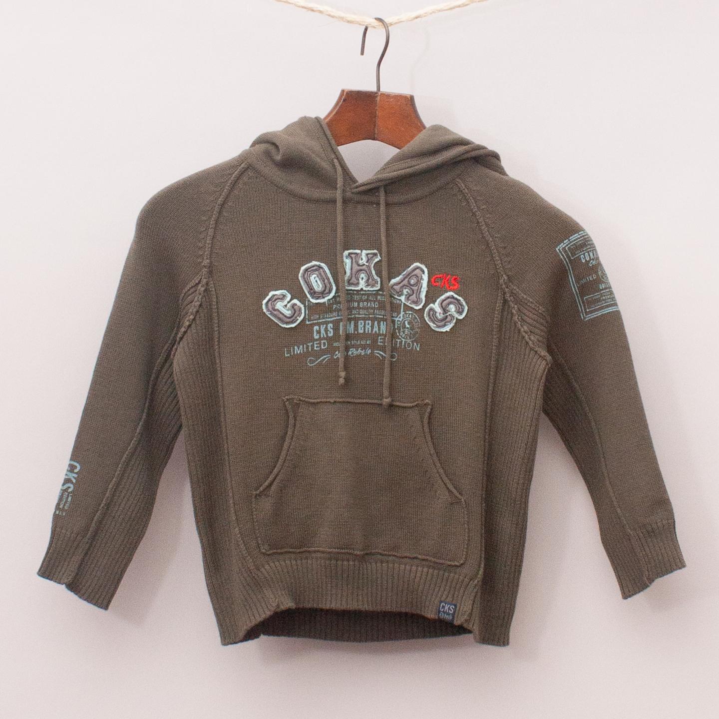 CKS "brand new with tags" khaki hooded jumper with large front pocket, embroidered logo across the front and detailed edging *100% Cotton