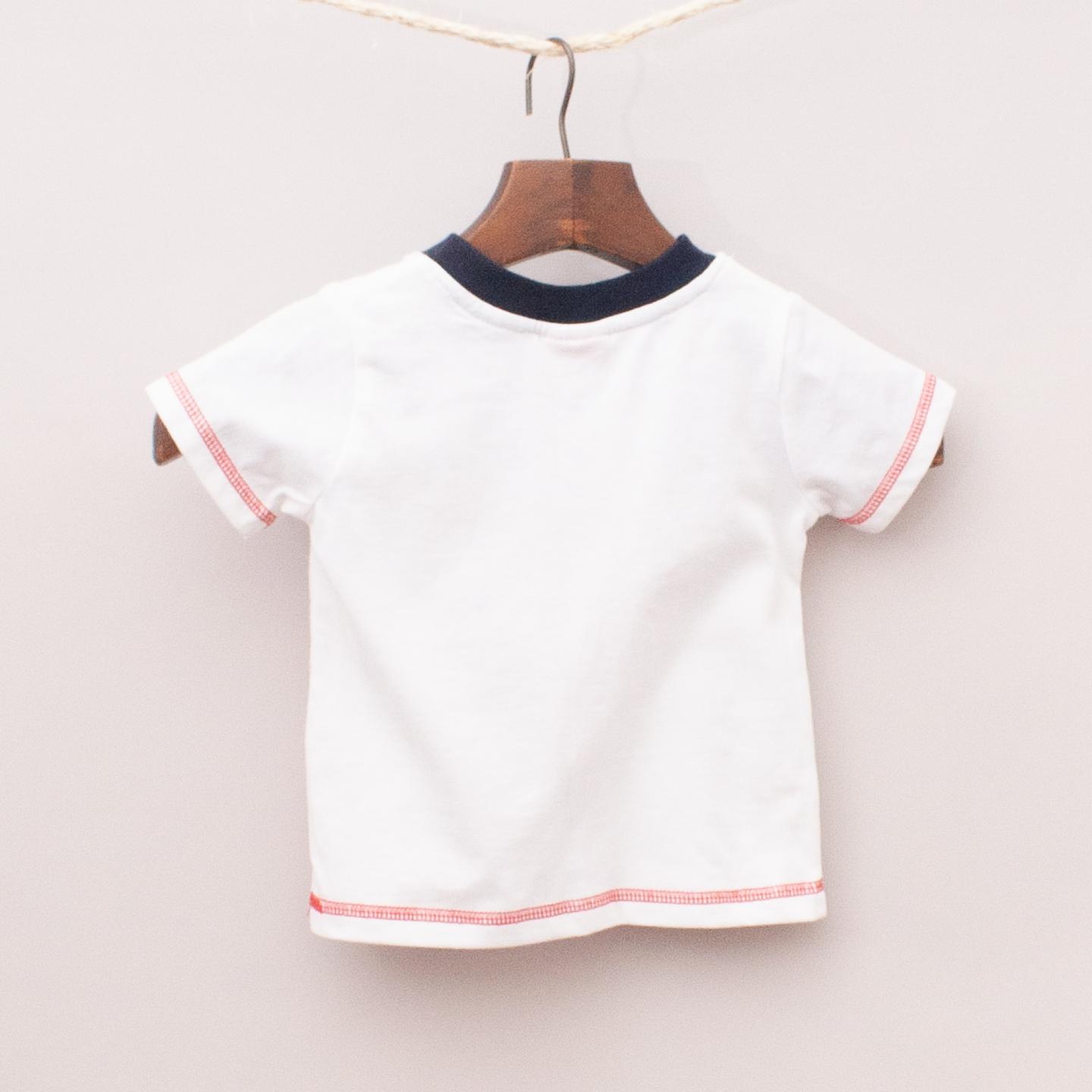 Candy Stripes "brand new with tags" white t-shirt with navy blue neckline and printed slogan on the front *100% Cotton