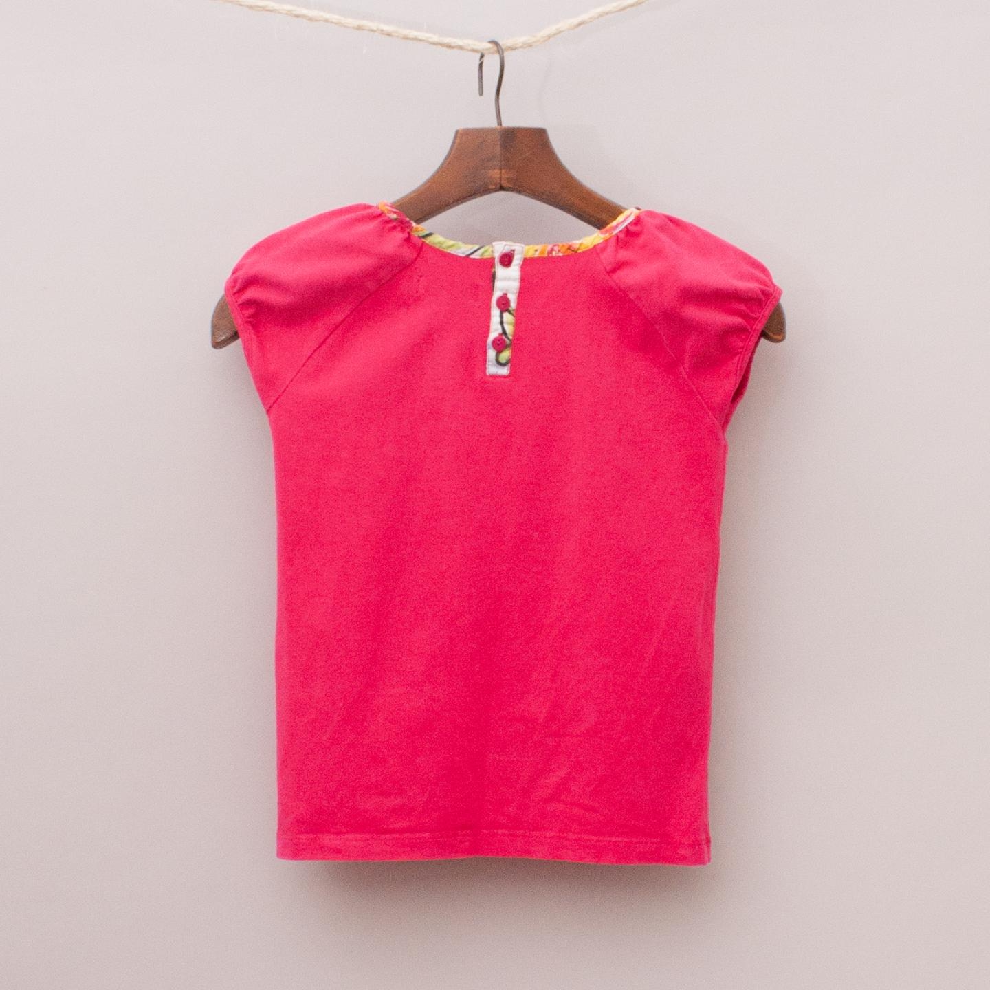Catimini hot pink t-shirt with puffed sleeves, printed flowers across the front and floral trim at the neckline *100% Cotton