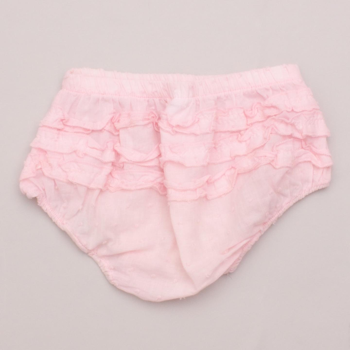 Charlie & Me pastel pink bloomers with ruffled bottom and elastic waistband