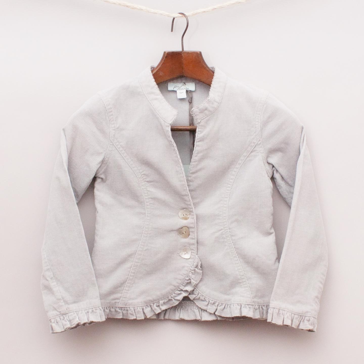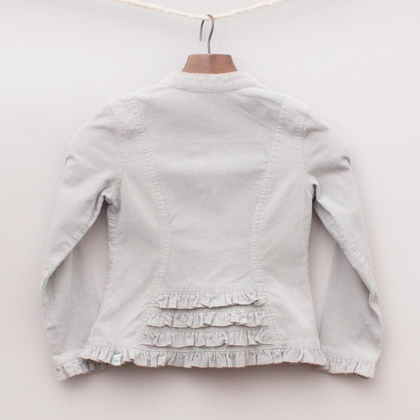 Chino "brand new with tags" grey corduroy jacket with ruffled hemline and cuffs and pearl heart buttons