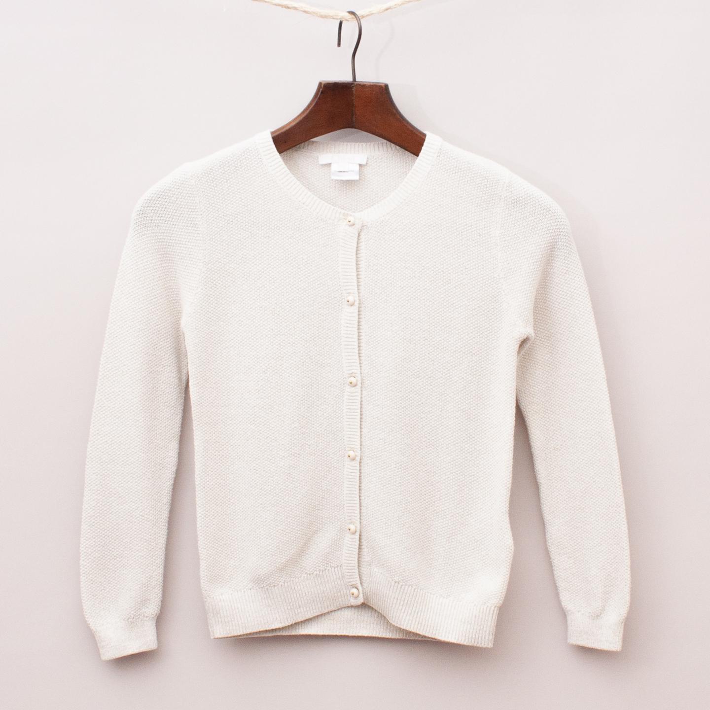 Chloe cream and gold metallic fleck cardigan with ribbed neckline, cuffs and hemline and full button down front *43% Cotton, 22% Polyester, 22% Viscose, 5% Metalized Fibre