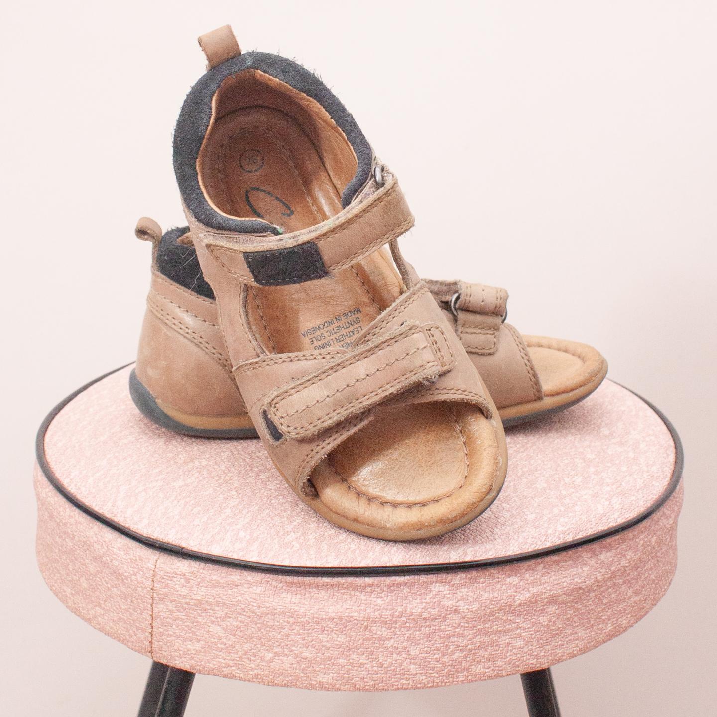 Ciao brown leather sandals with two velcro straps and thin rubber soles - Size EU 26 (Age 3 approx.)