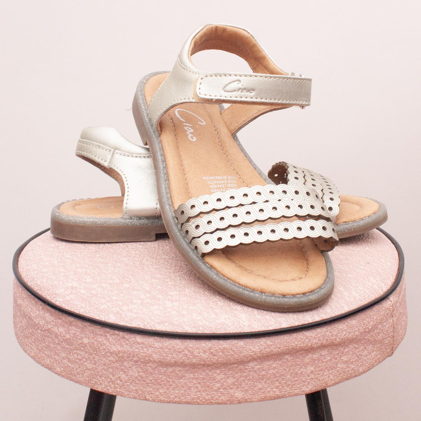 Ciao gold metallic sandals with single velcro strap and thin rubber soles - Size EU 31 (Age 6 approx.)