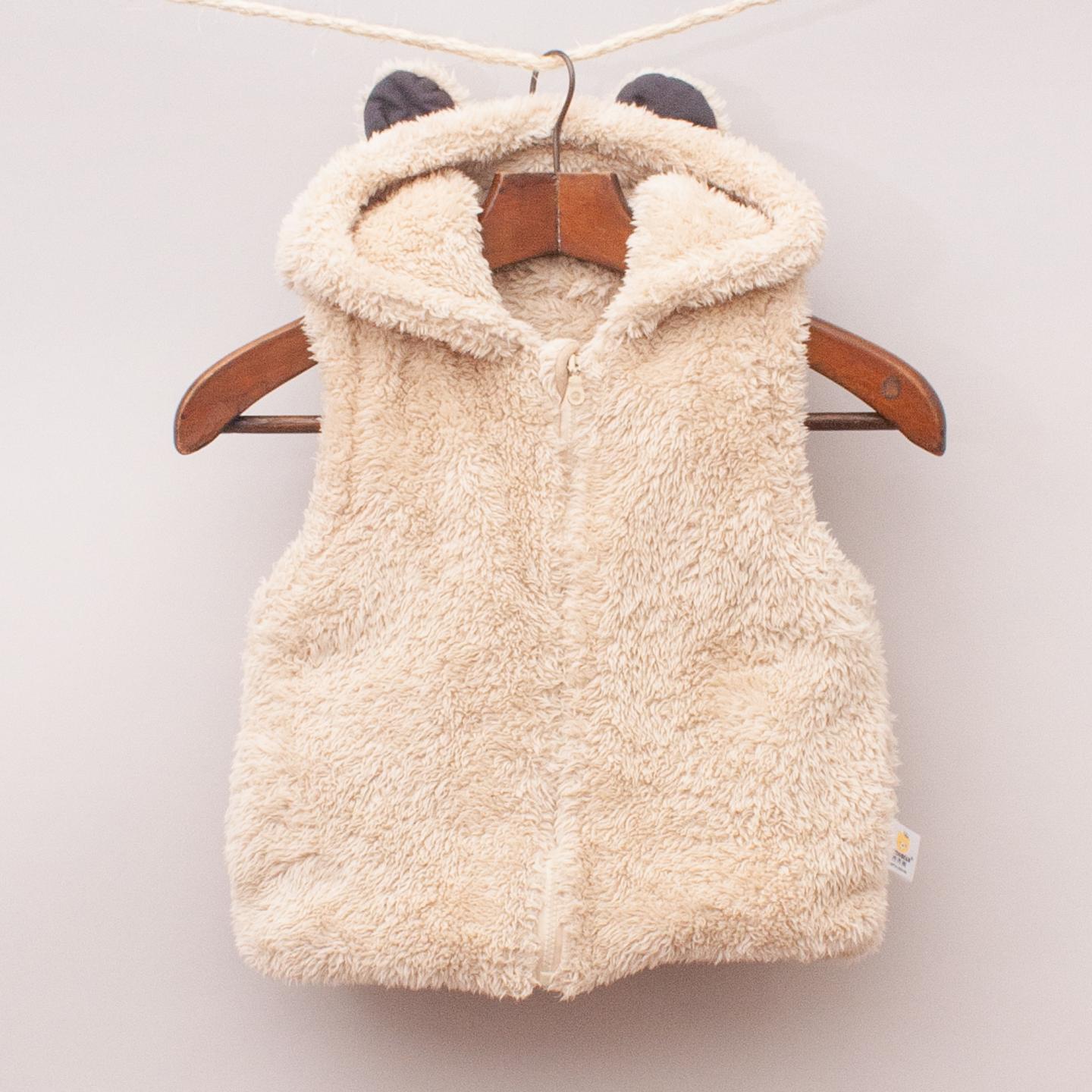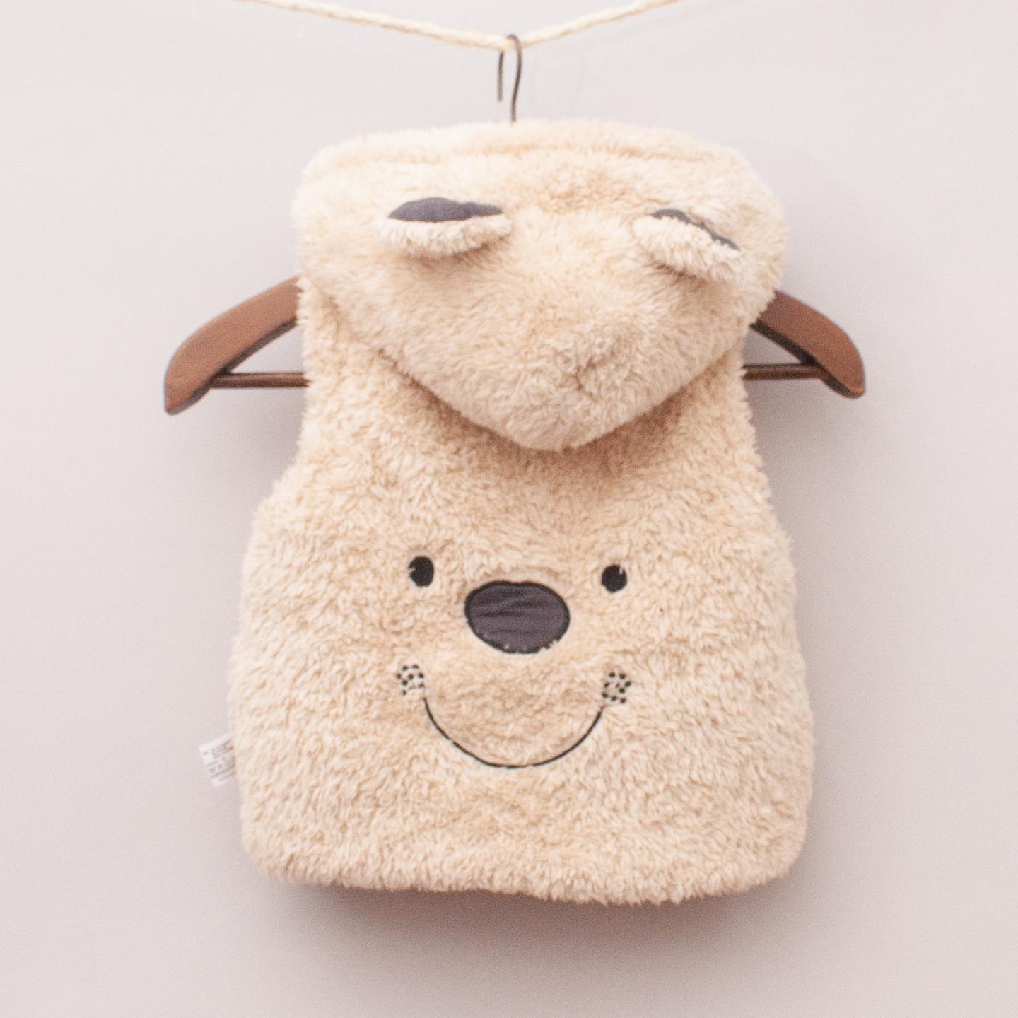 Cicii Bear brown fuzzy vest with hood and bear ear details, two front pockets and full zip up front