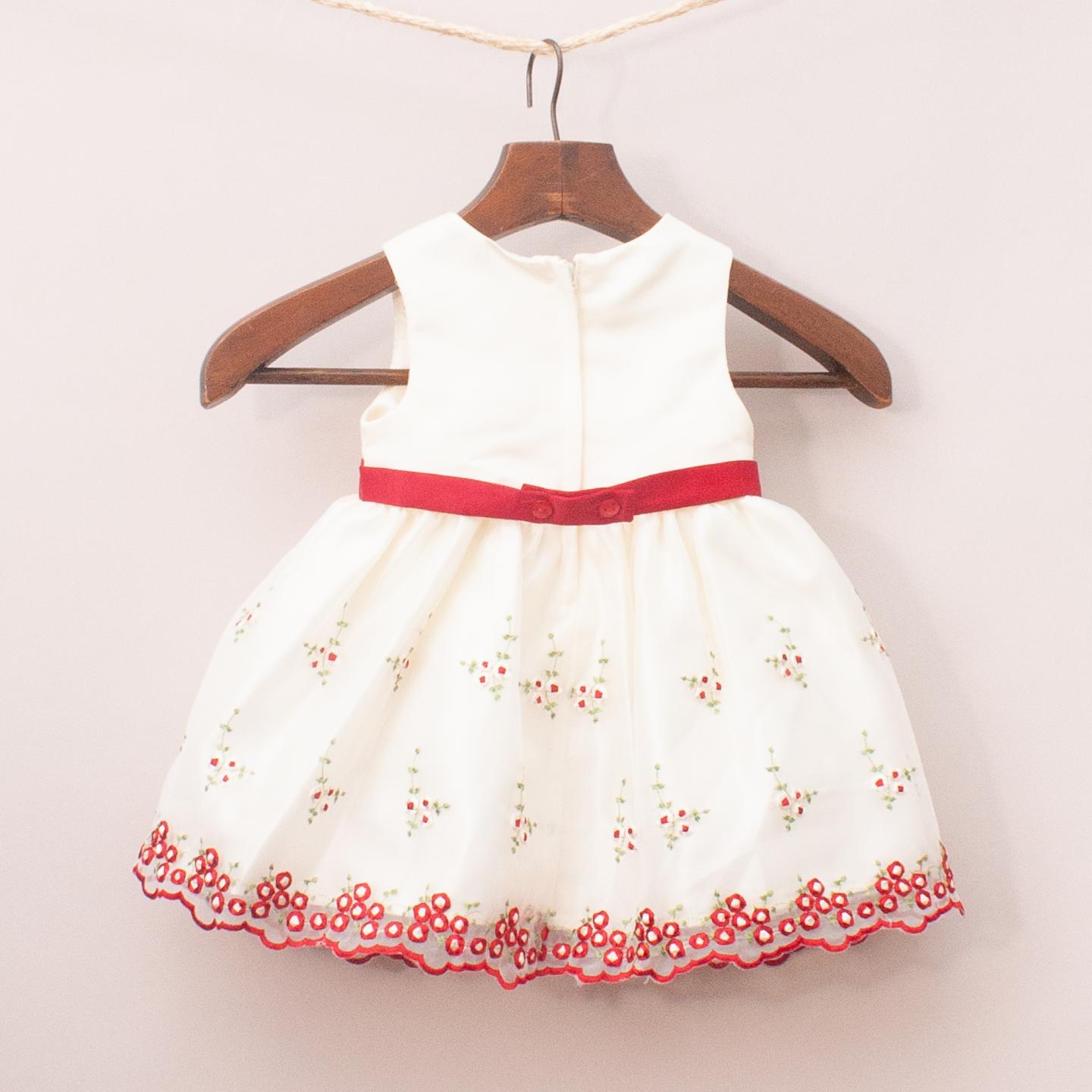 Cinderella cream satin and red embroidered party dress, fully lined with red satin belt and button down back closure *100% Polyester