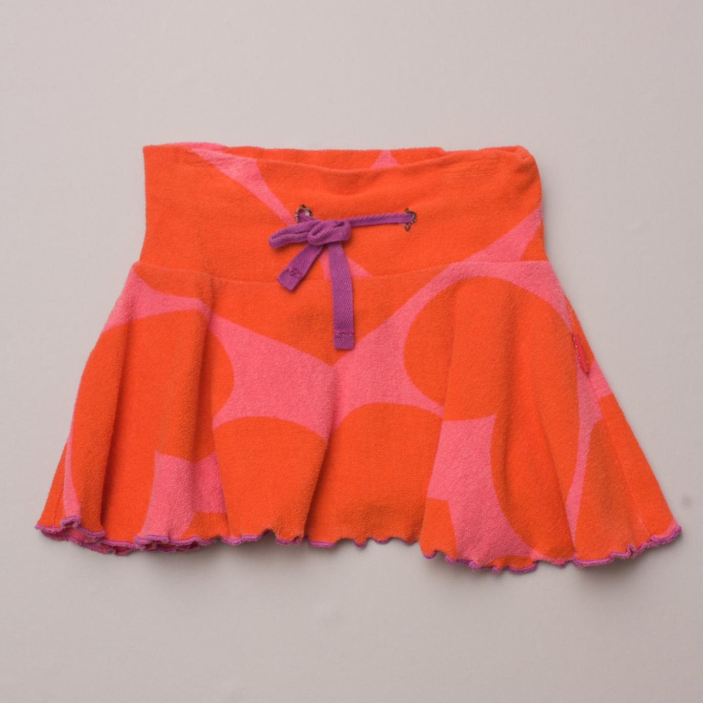 Claesens bright orange and pink terry towelling skirt with purple edge trim and drawstring with wide elastic waistband