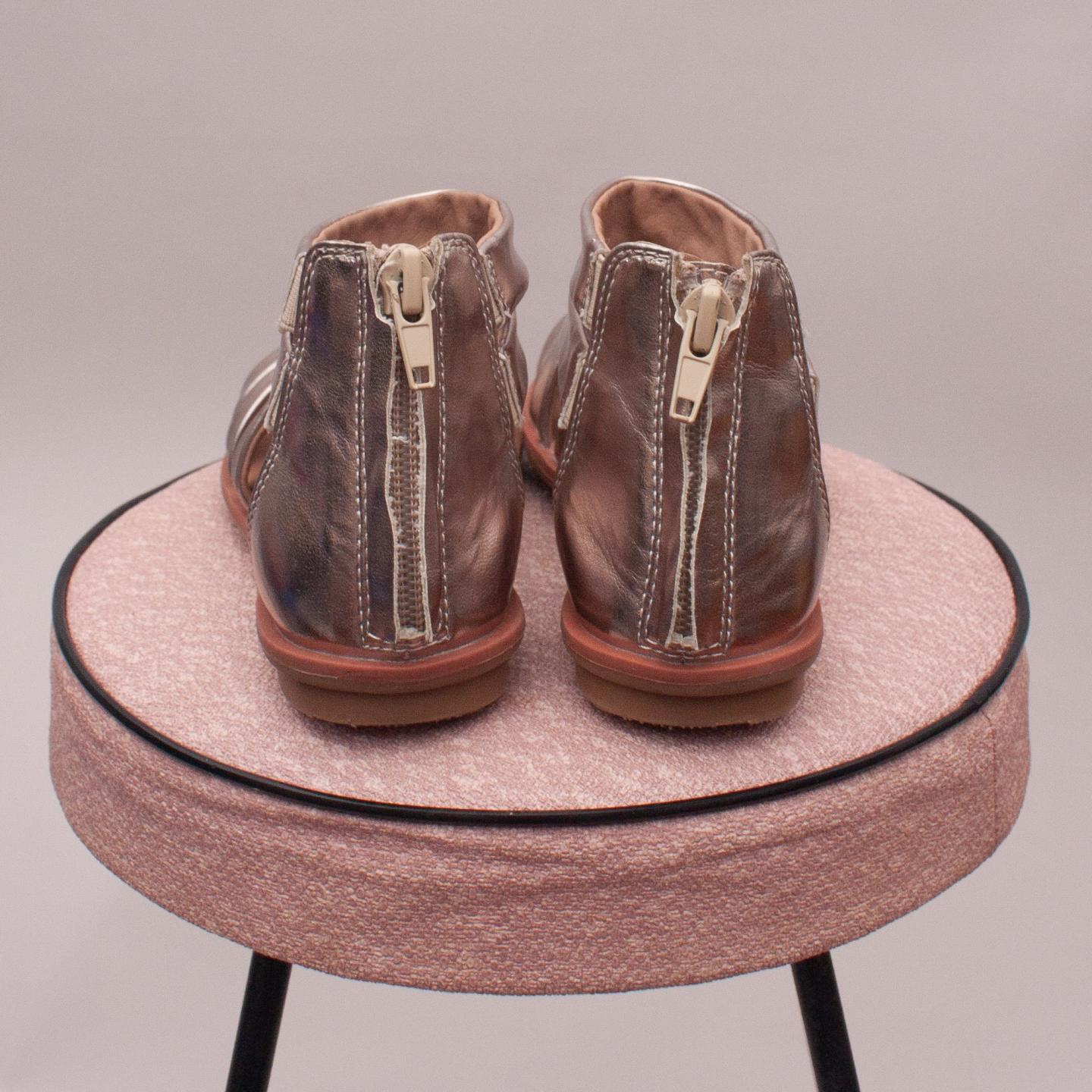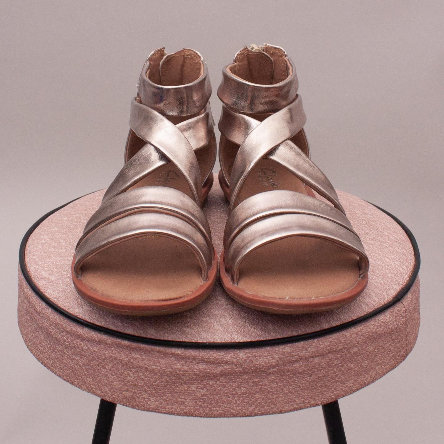 Clarks leather pewter metallic sandals with single zip back closure and sturdy rubber soles - Size EU 29 (Age 5 Approx.)