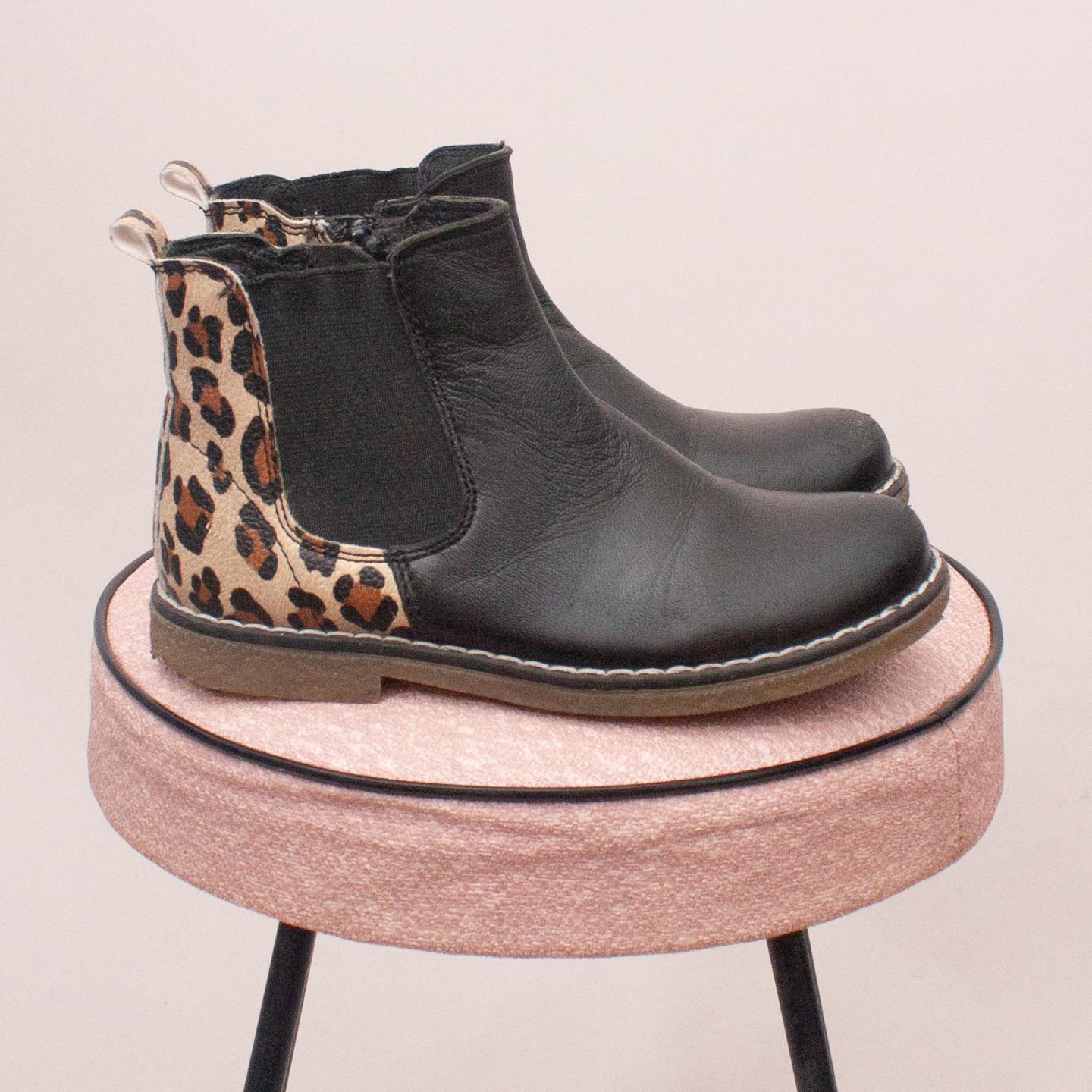 Clarks black and leopard print boots with side zip closure and sturdy rubber soles - Size EU 27 (Age 3-4 approx.)