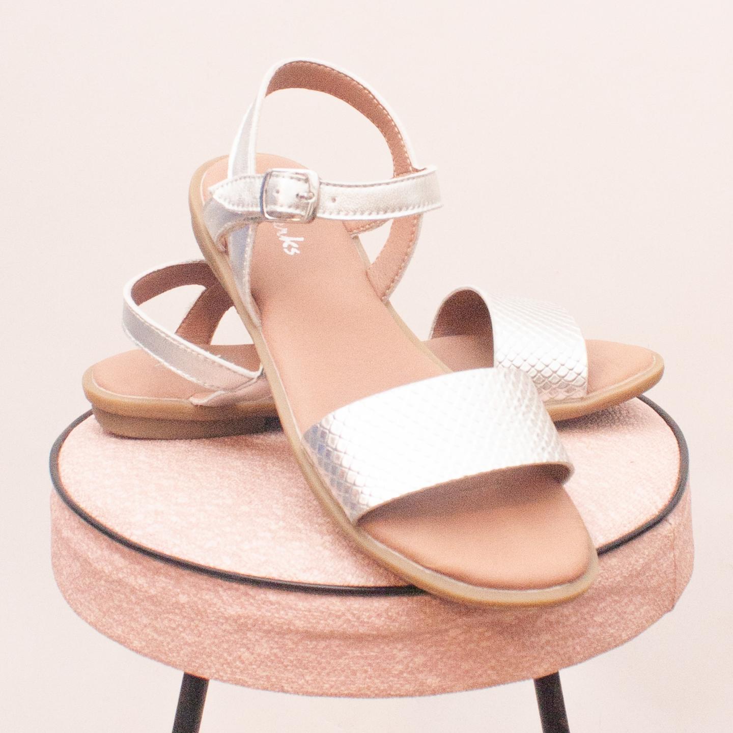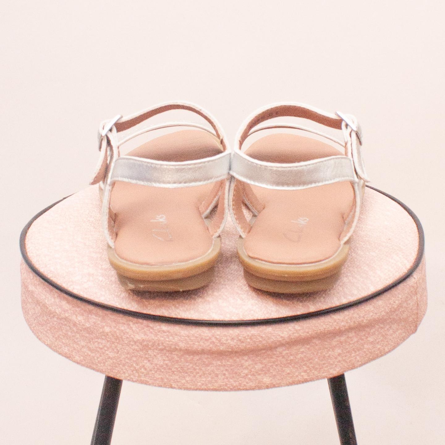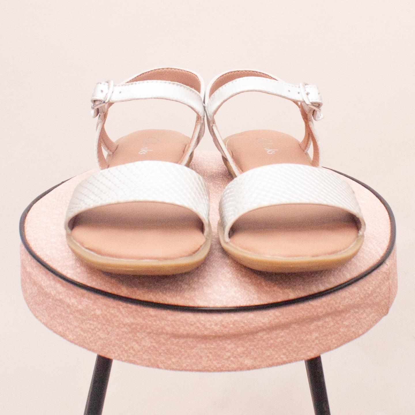 Clarks metallic sandals with single buckle strap and thin rubber soles - Size EU 32 (Age 6 approx.)