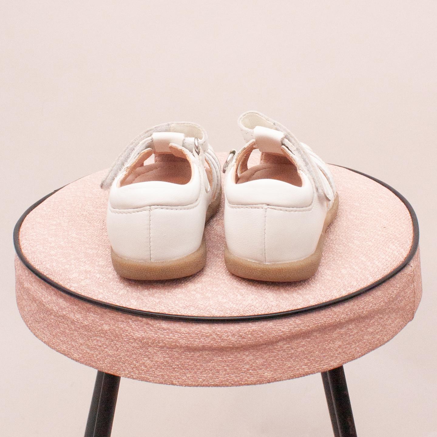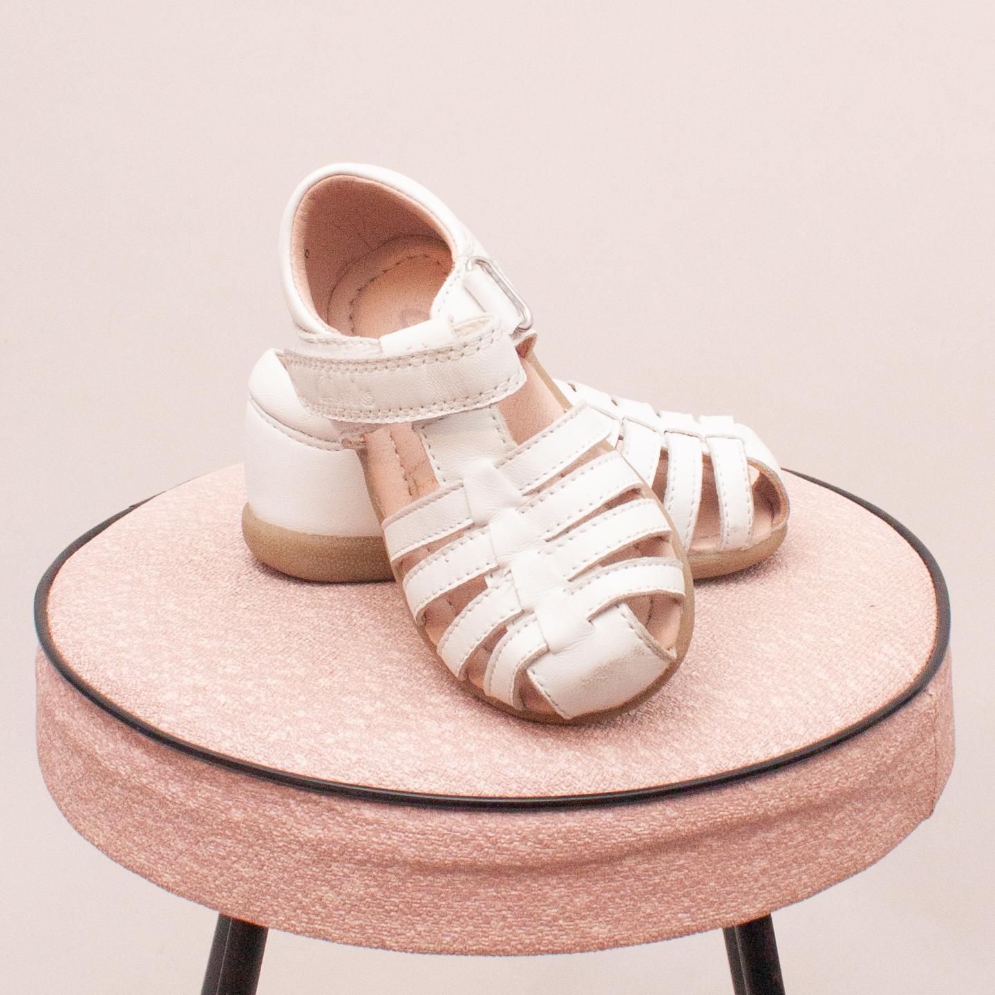 Clarks "brand new" white leather sandals with single buckle and velcro strap with sturdy rubber soles - Size 0-12Mths approx.
