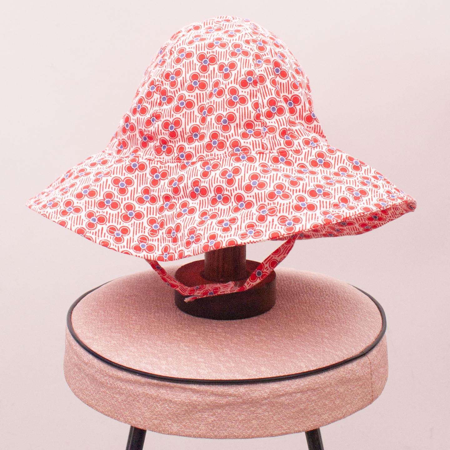 Collette Dinnigan red and white floral sun hat with underchin velcro strap - Suitable for age 0-2 Years
