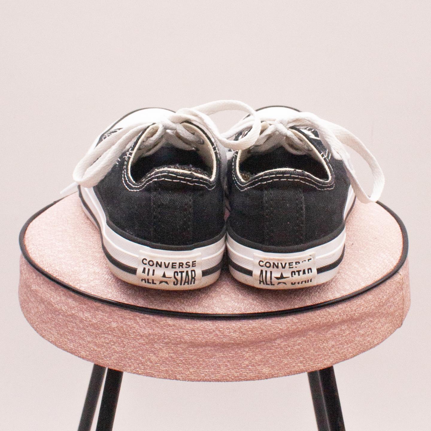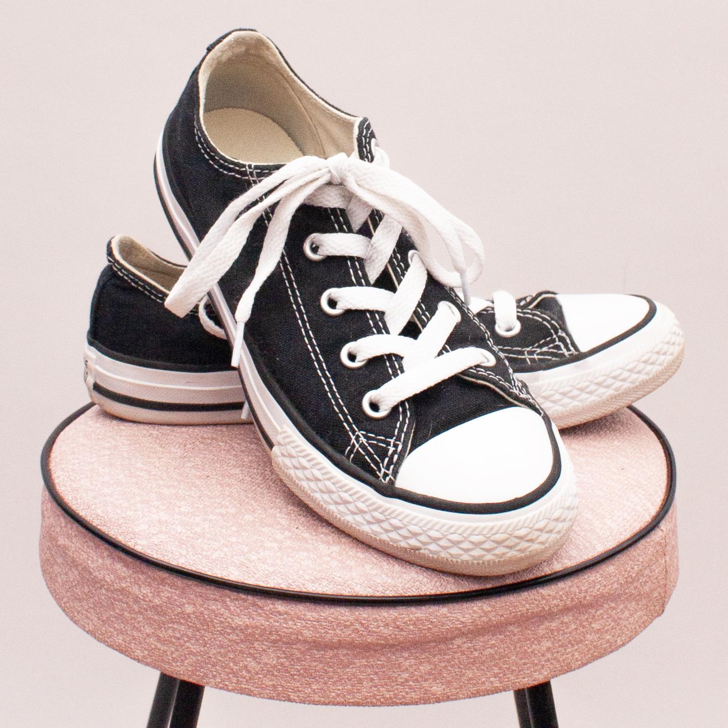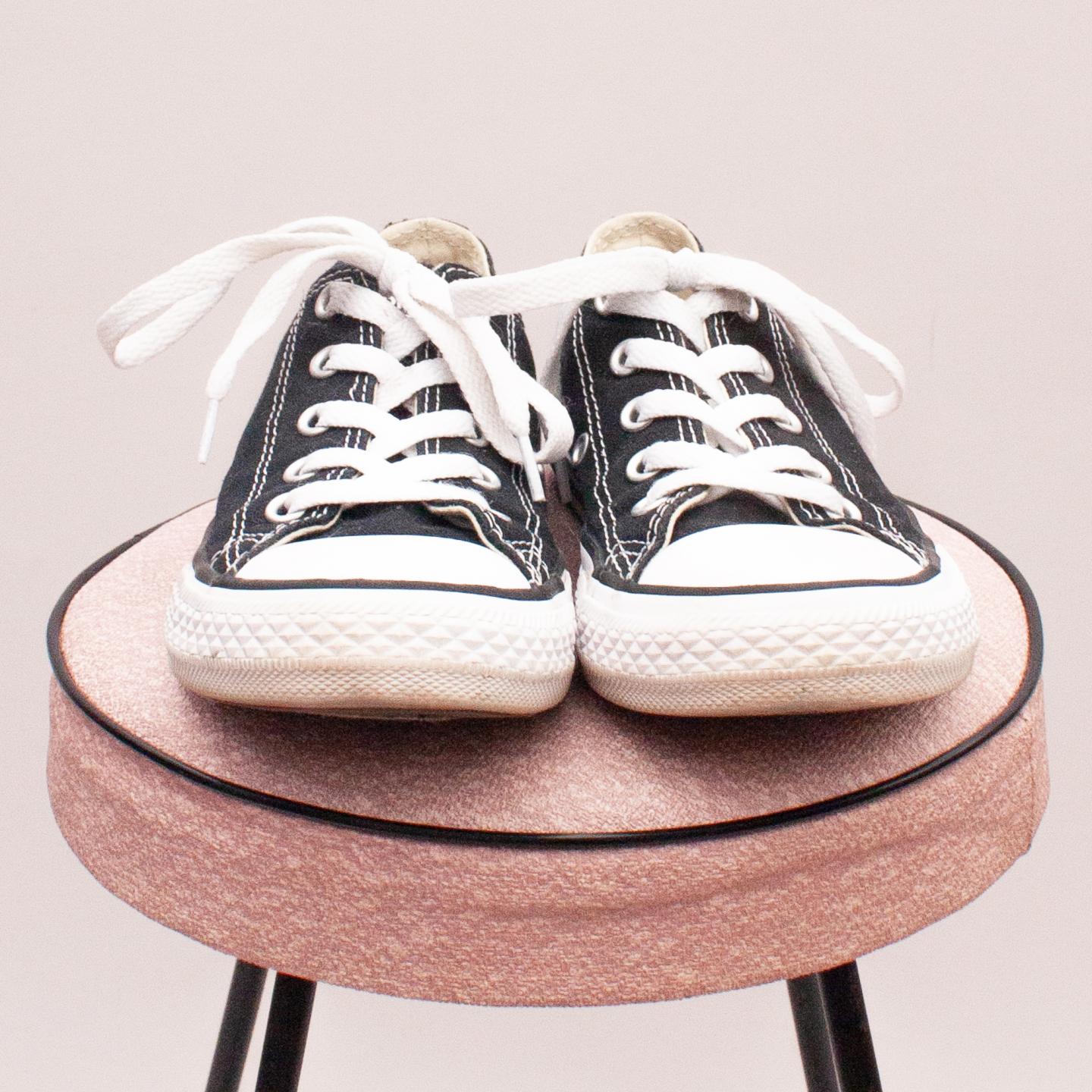 Converse black low rise lace up's with white laces and sturdy rubber soles - Size EU 32 (Age 6-8 Approx.)