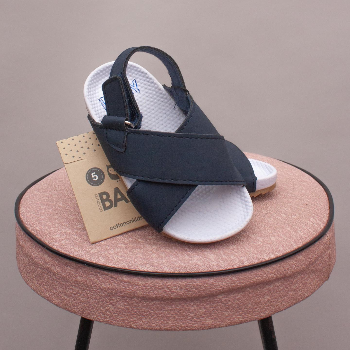 Cotton On navy blue sandals with single velcro strap and rubber soles - Size AU 5