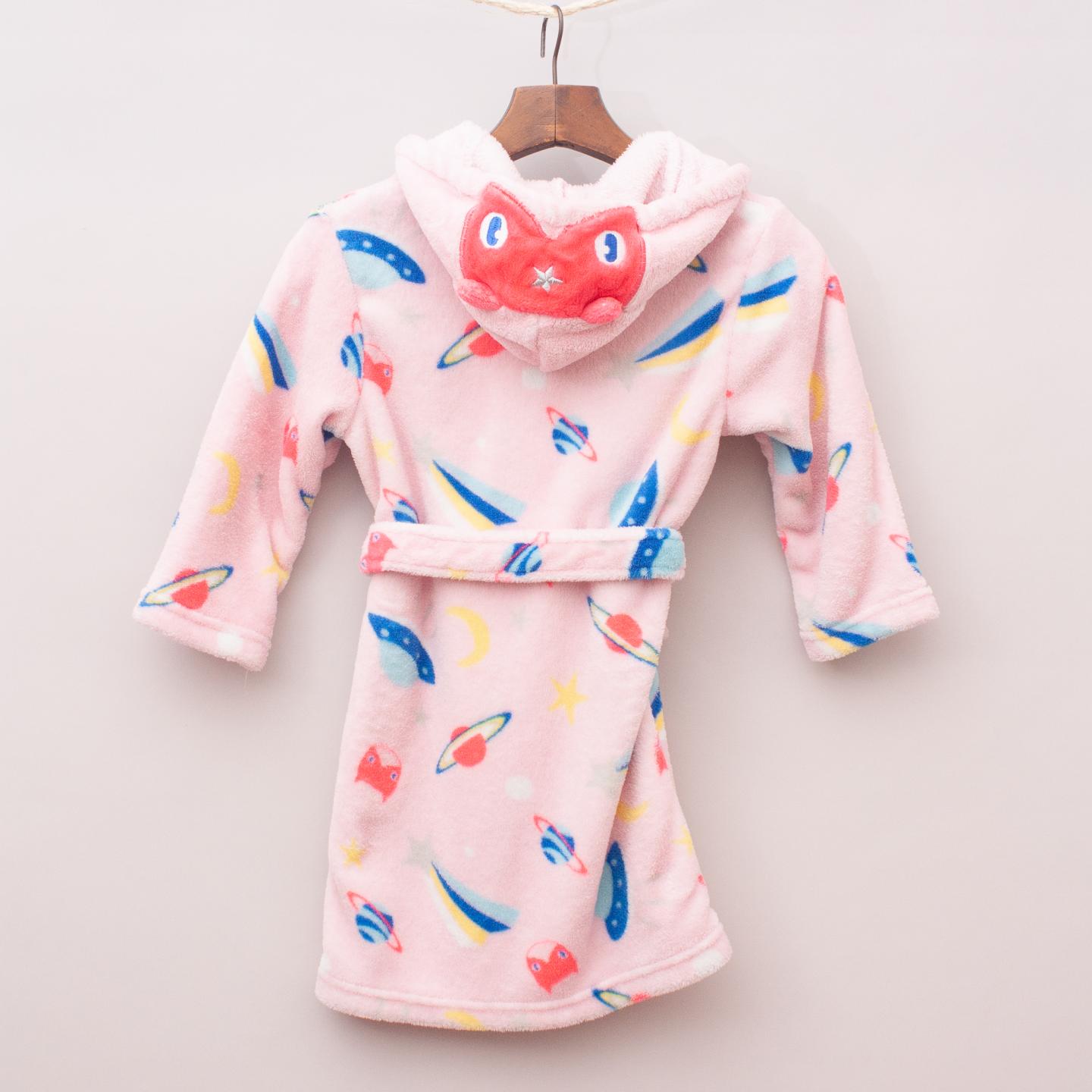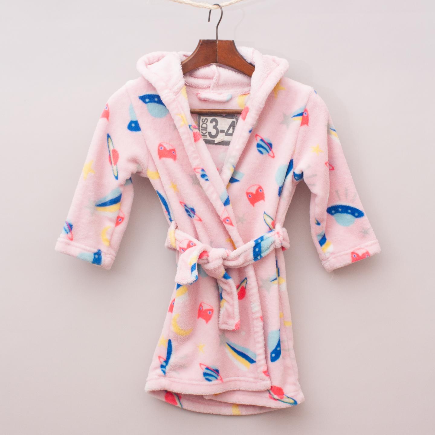 Cotton On pastel pink and space patterned furry dressing gown with tie waist - Size 3-4