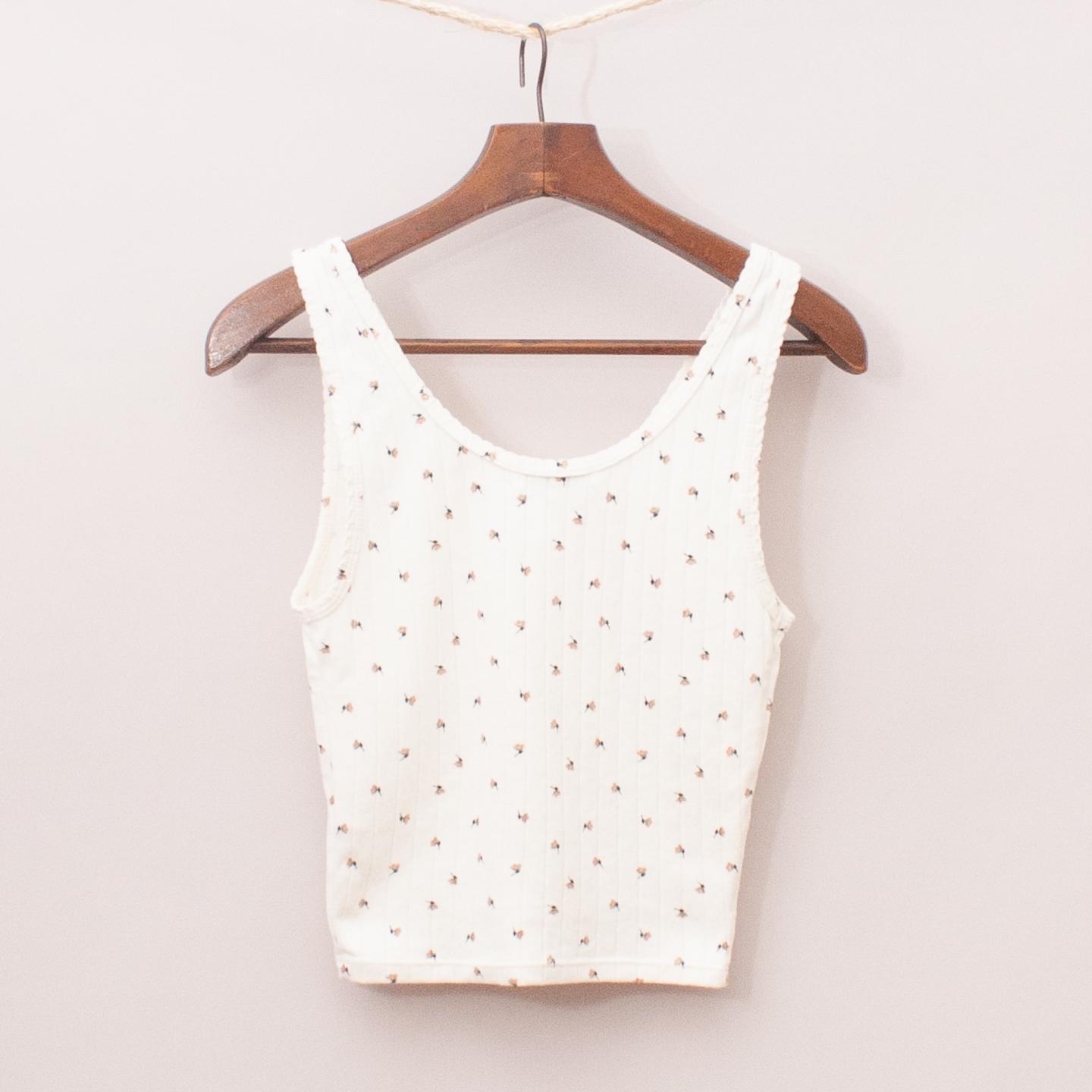 Cotton On cream and floral patterned singlet with gathered front and v-neckline *60% Cotton, 40% Polyester