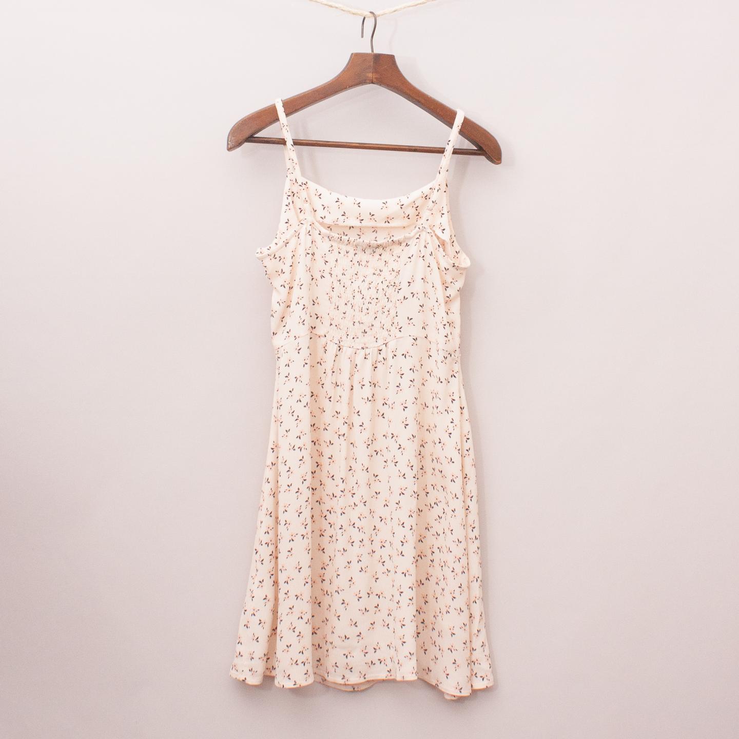 Cotton On cream and floral sun dress with flippy skirt, ruched back and adjustable straps *100% Viscose