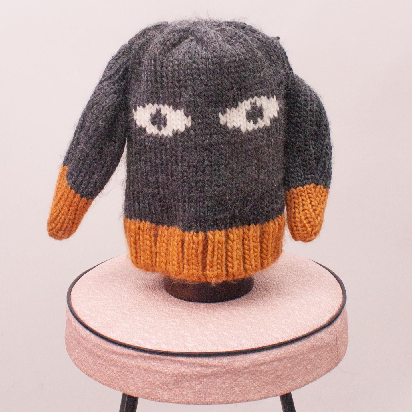 Cotton On charcoal and orange knitted goat beanie with floppy ears - Age 2-4 approx.