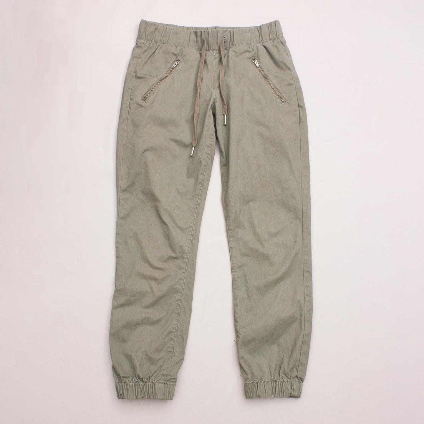 Cotton On khaki relaxed pants with two front zip pockets and elastic cuffs and waistband with drawstring - Marked as women's size 6 *100% Cotton