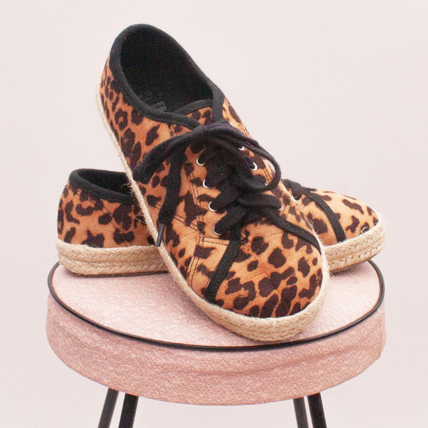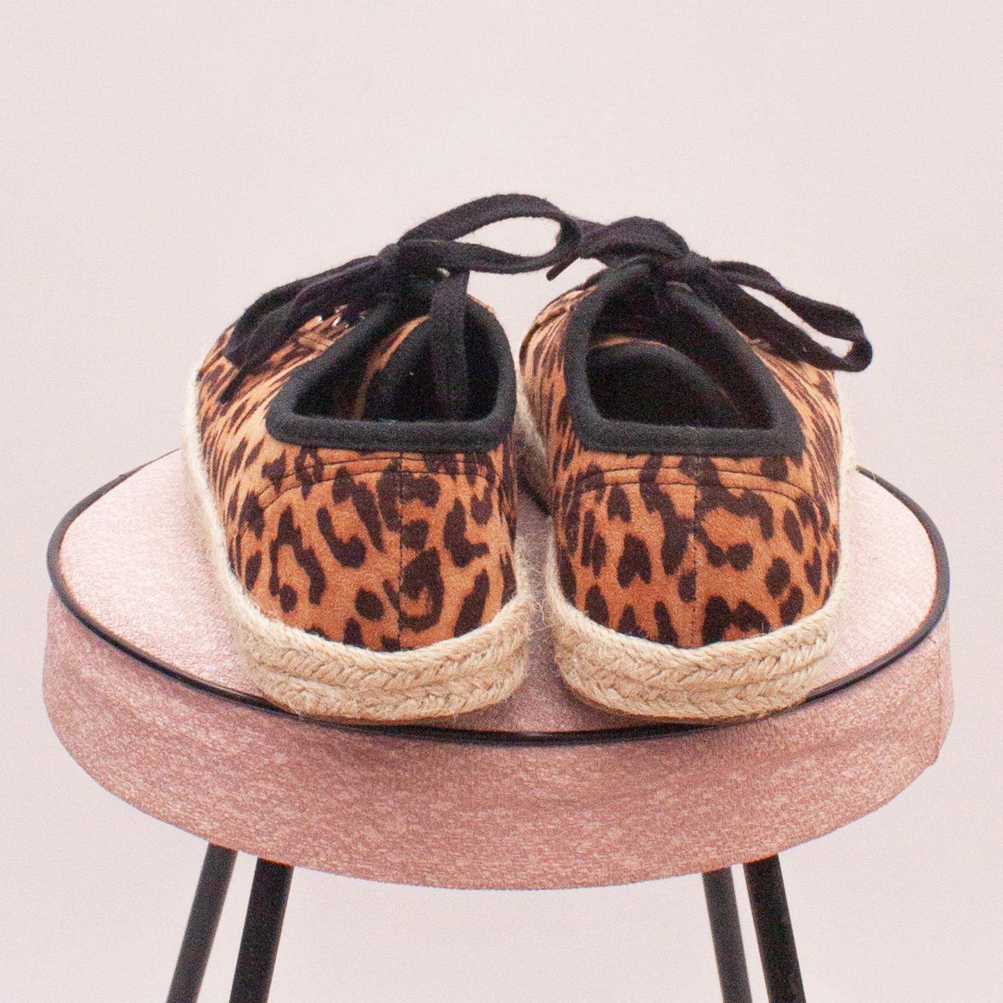 Cotton On leopard patterned lace up's with black laces and rubber rope style soles - Size EU 34-35 (Age 7-8 Approx.)