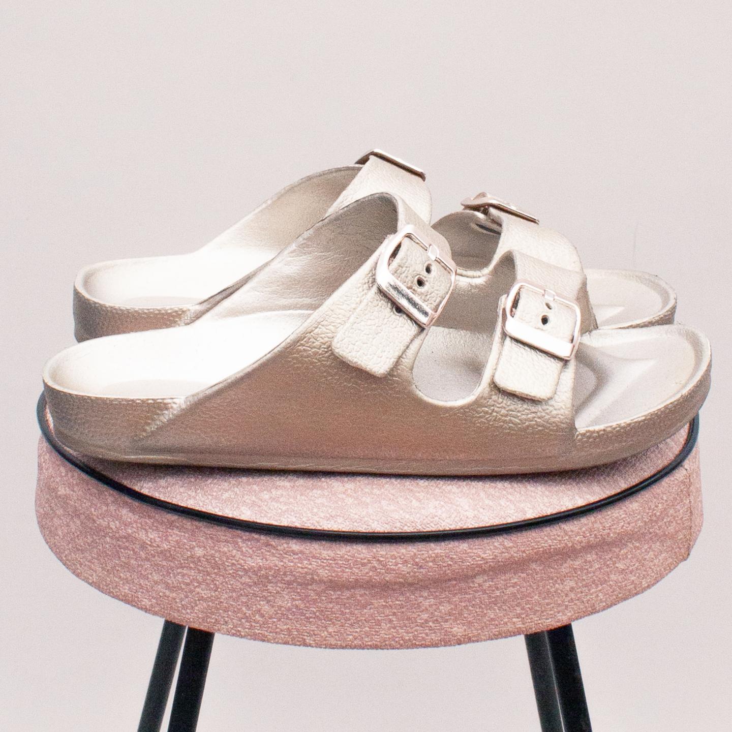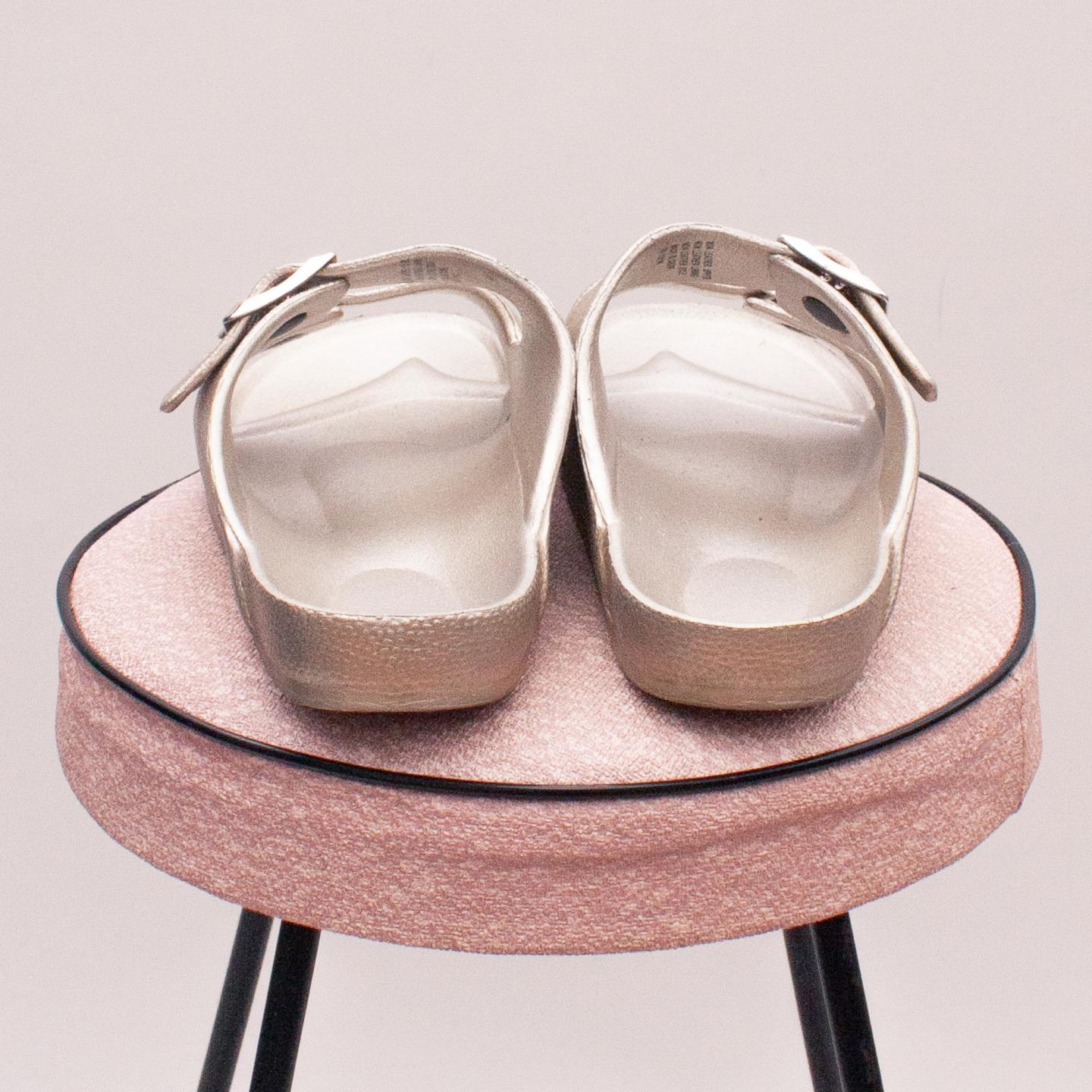 Cotton On gold metallic sandals with two buckle straps and rubber soles - Size EU 31 (Age 6-8 Approx.)