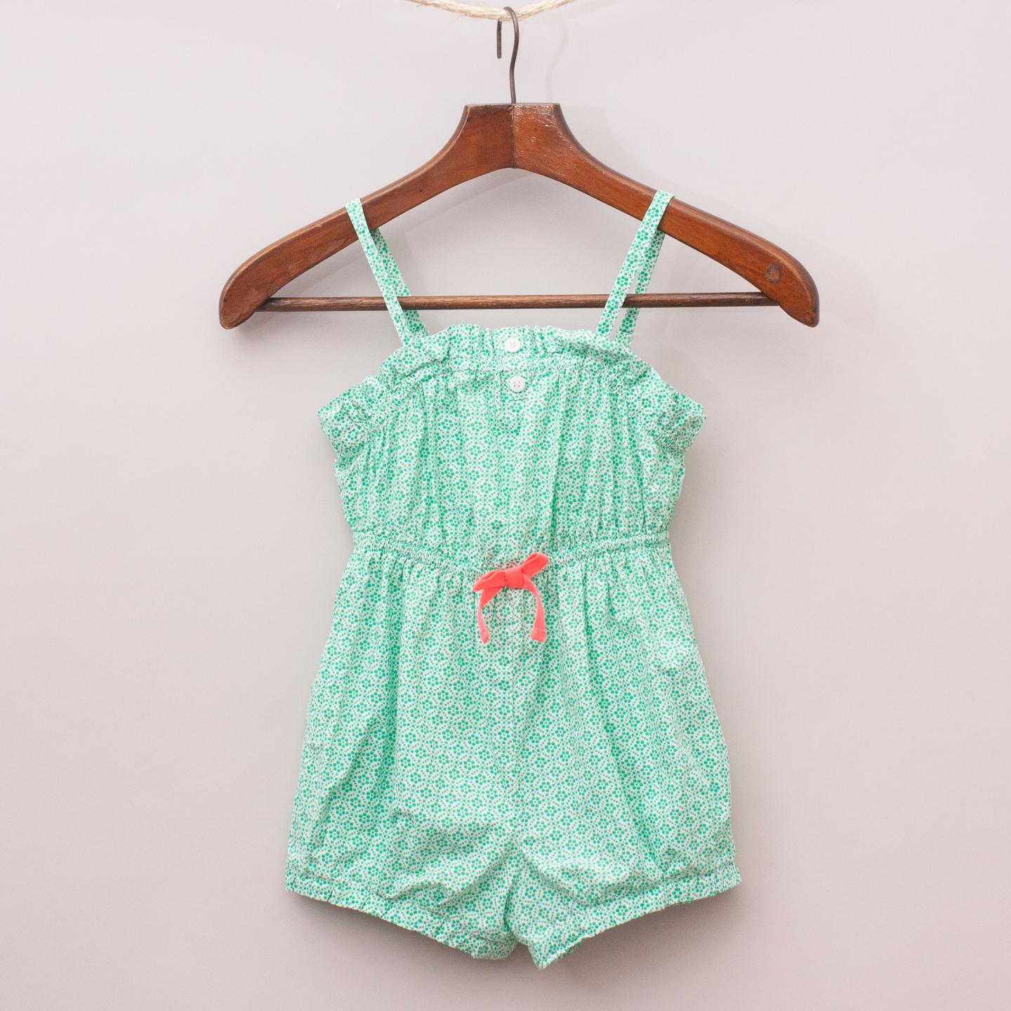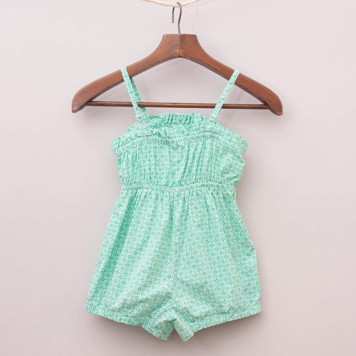Cotton On green and white patterned playsuit with elastic waistband and neckline, fluro bow detail and adjustable straps *100% Cotton