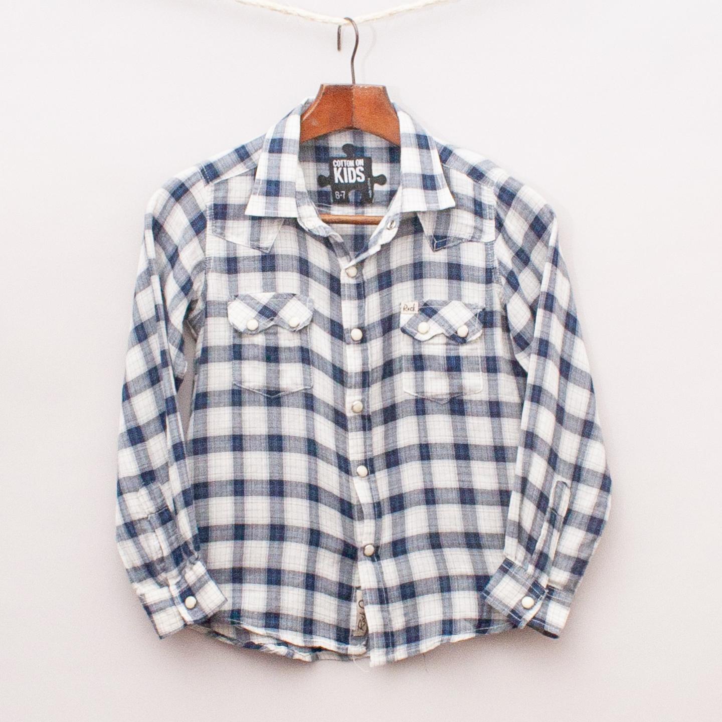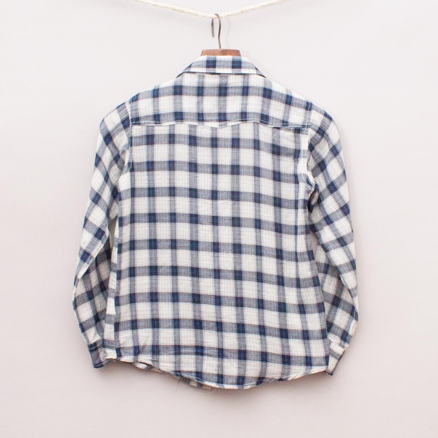 Cotton On grey and navy blue plaid shirt with two front pockets and full button down front