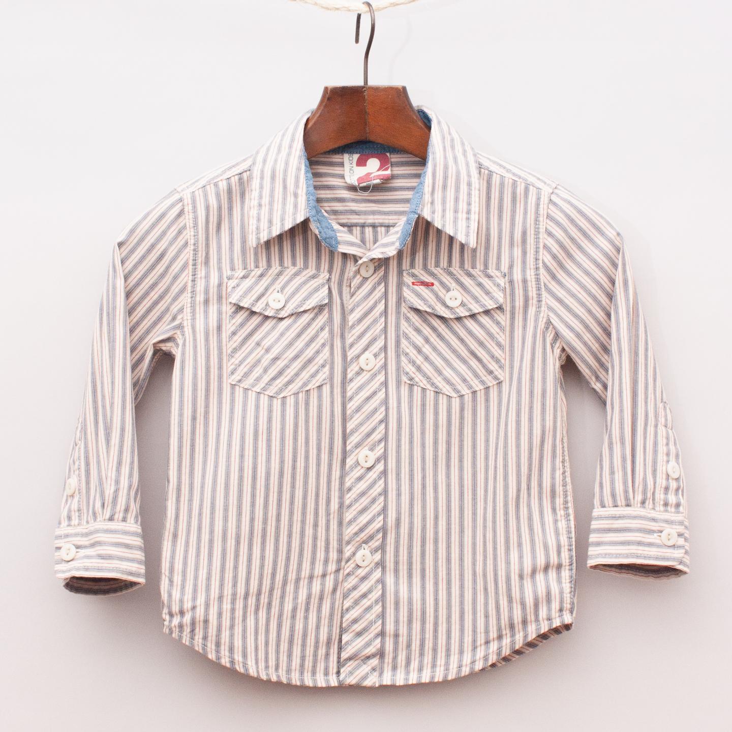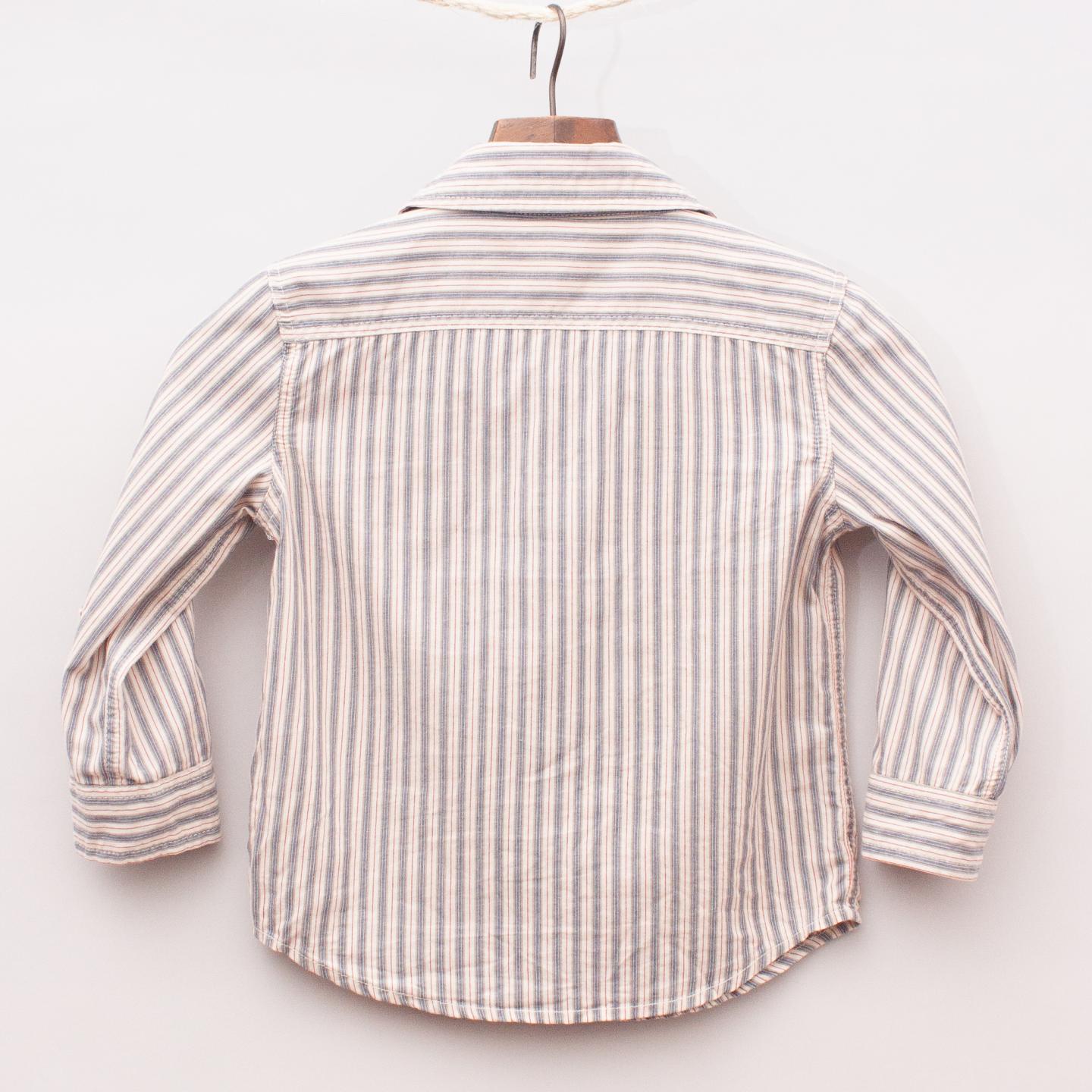 Cotton On blue, white and grey striped shirt with two front pockets and full button down front