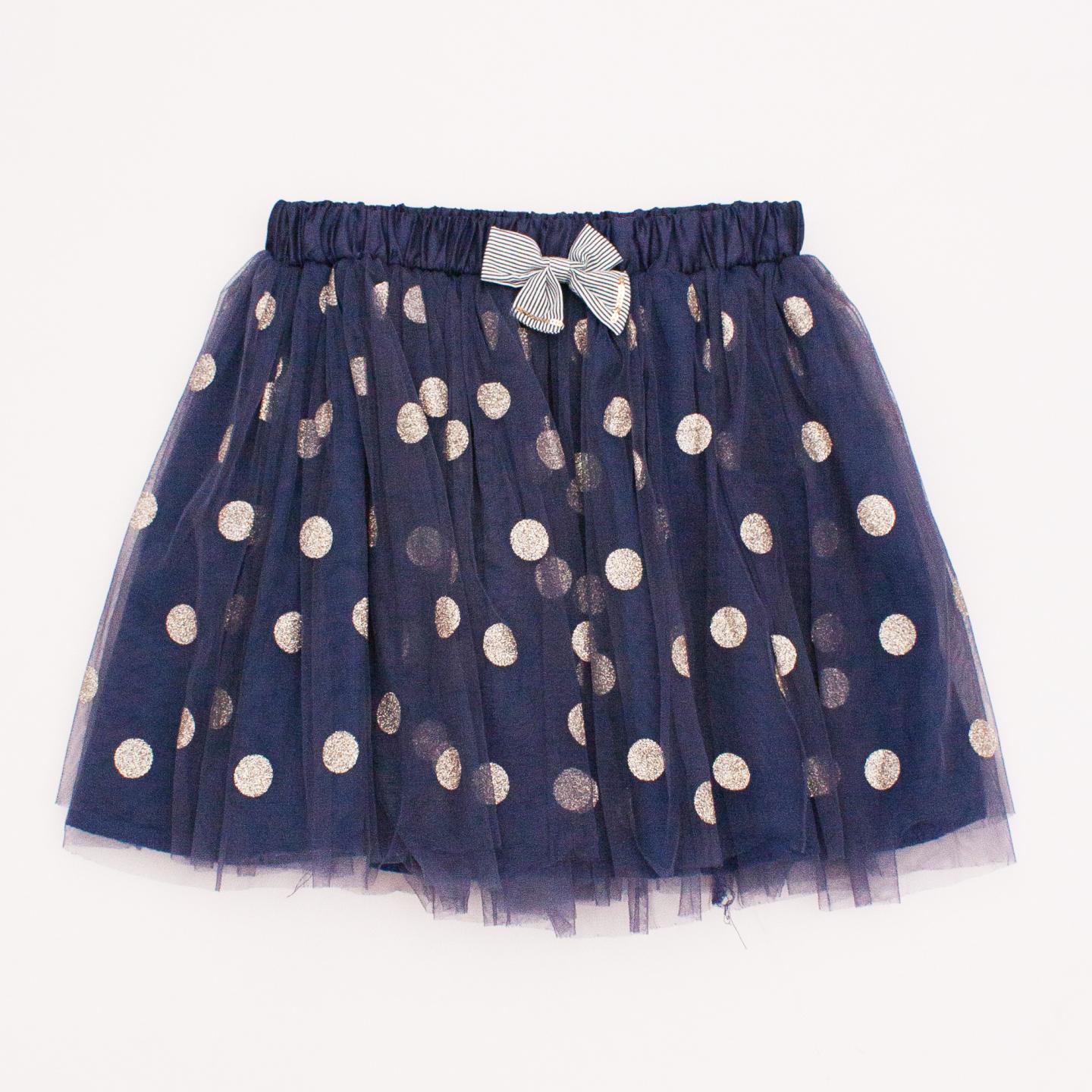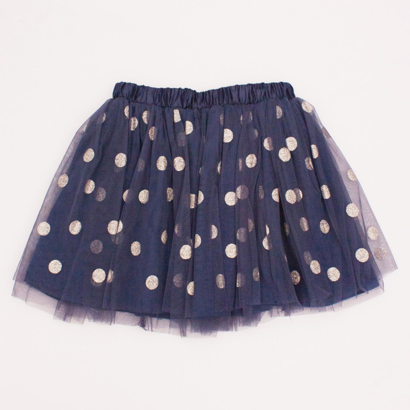 Cotton On navy blue tulle skirt with silver glitter polka dots throughout, elastic waistband and bow detail