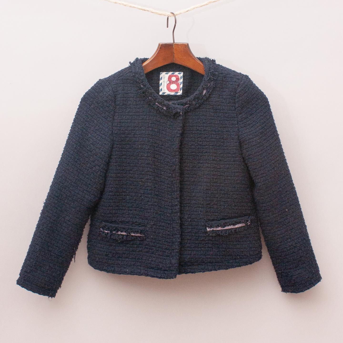 Cotton On navy blue Chanel-esque woven jacket with fringe and metallic trim and single button closure *95% Polyester, 5% Wool