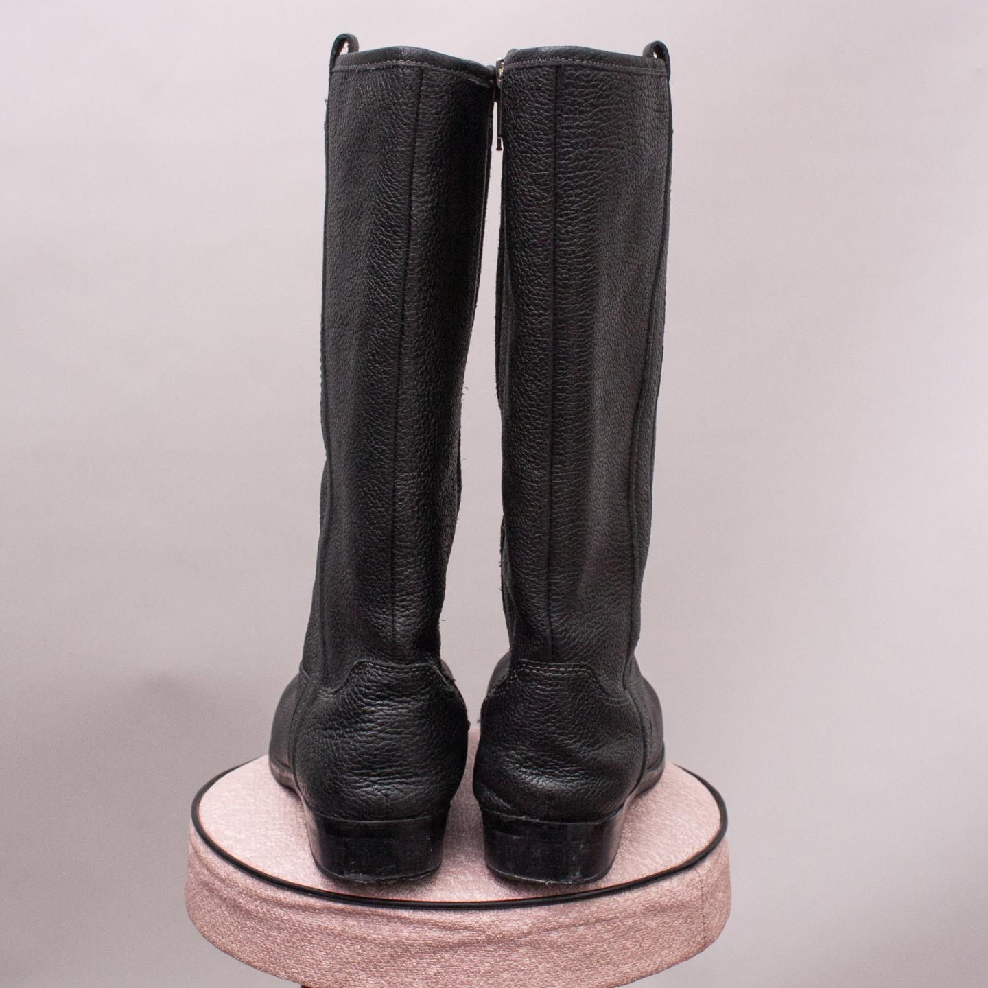 Country Road black textured leather boots with side zip closure and sturdy rubber soles - Size EU 36 (Age 8 Approx.)