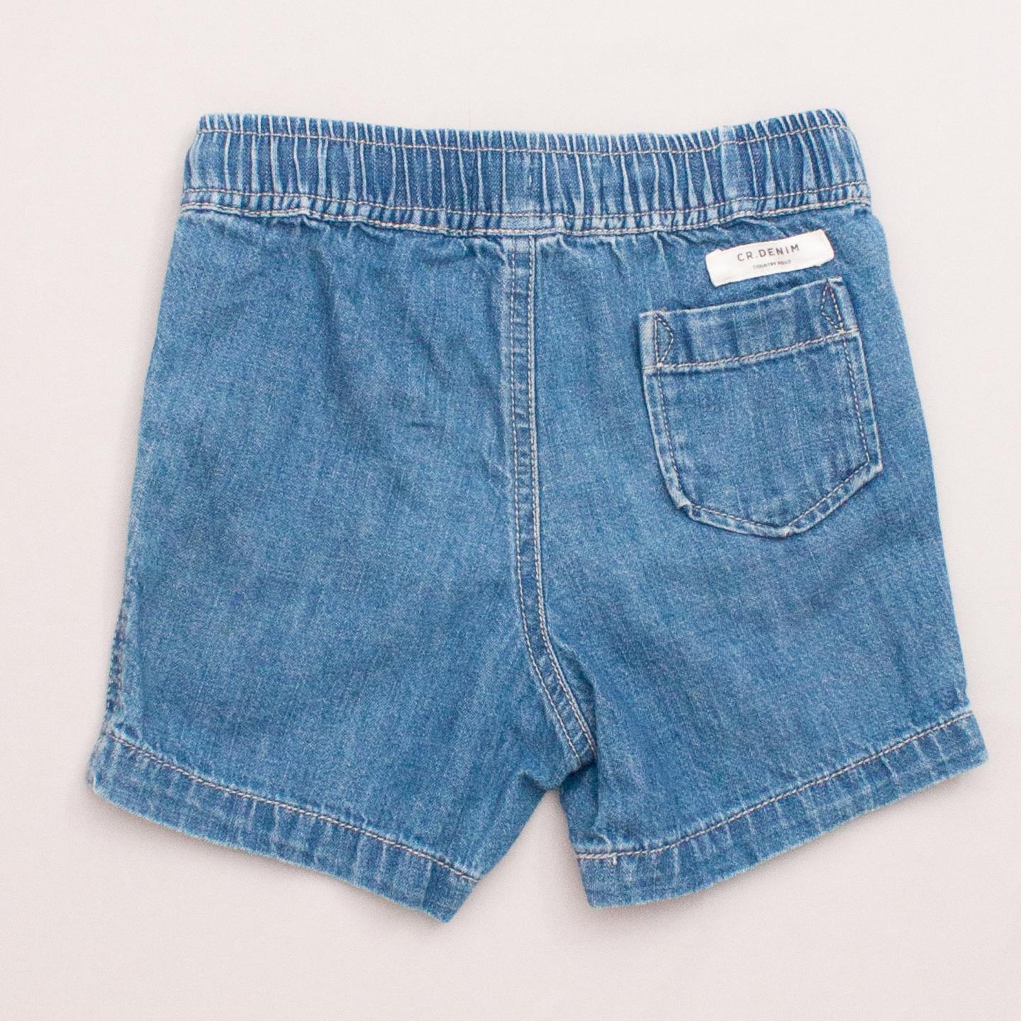 Country Road distressed denim shorts with front and back pockets, elastic waistband and drawstring